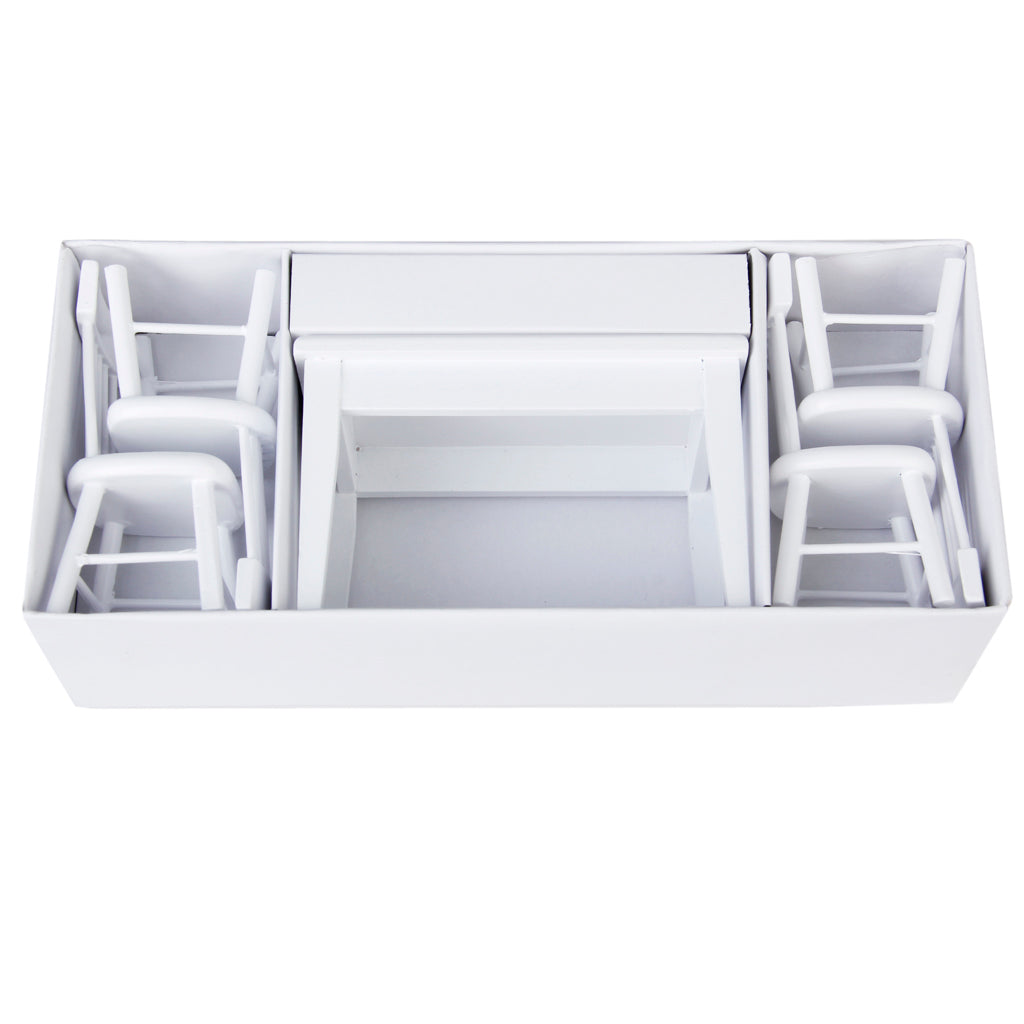 This table chair model set is well designed and crafted for your children to have the best house-hold companion for all day . big table with four chairs which each has a hollow on the back is very stylish and fashionable. This table model set is great miniature furniture for your dollhouse living room and a excellent decoration for your interior model.