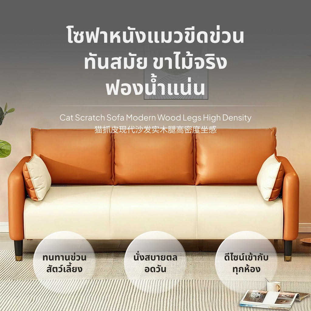 HIGH-QUALITY MATERIAL: Made with cat scratch-resistant fabric, this sofa is perfect for homes with pets.COMFORTABLE SEATING: Filled with high-density sponge for a comfortable sitting experience.STURDY FRAME: Wooden frame ensures stability and durability.ELEGANT DESIGN: Comes with solid wood legs and metal caps for a modern look.VERSATILE USAGE: Ideal for living rooms, bedrooms, offices, boutiques, and salons.