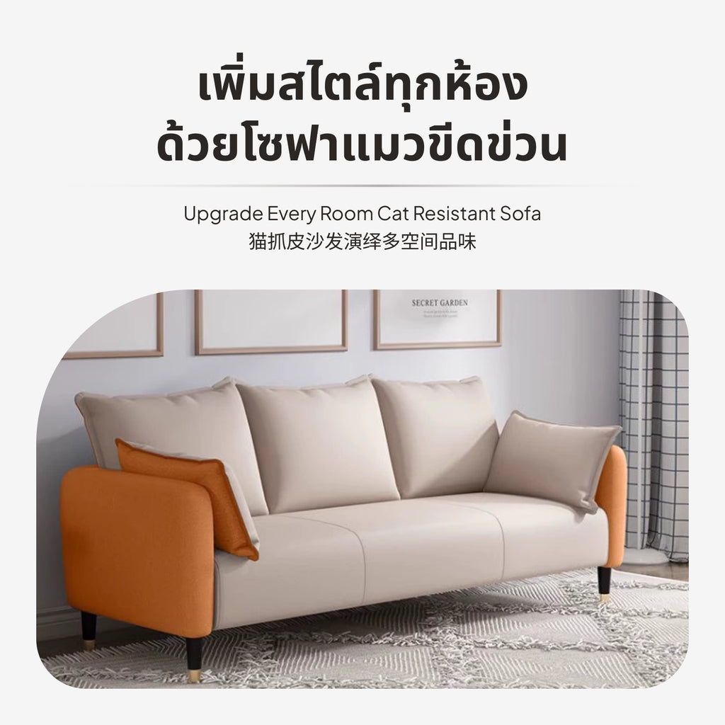 HIGH-QUALITY MATERIAL: Made with cat scratch-resistant fabric, this sofa is perfect for homes with pets.COMFORTABLE SEATING: Filled with high-density sponge for a comfortable sitting experience.STURDY FRAME: Wooden frame ensures stability and durability.ELEGANT DESIGN: Comes with solid wood legs and metal caps for a modern look.VERSATILE USAGE: Ideal for living rooms, bedrooms, offices, boutiques, and salons.