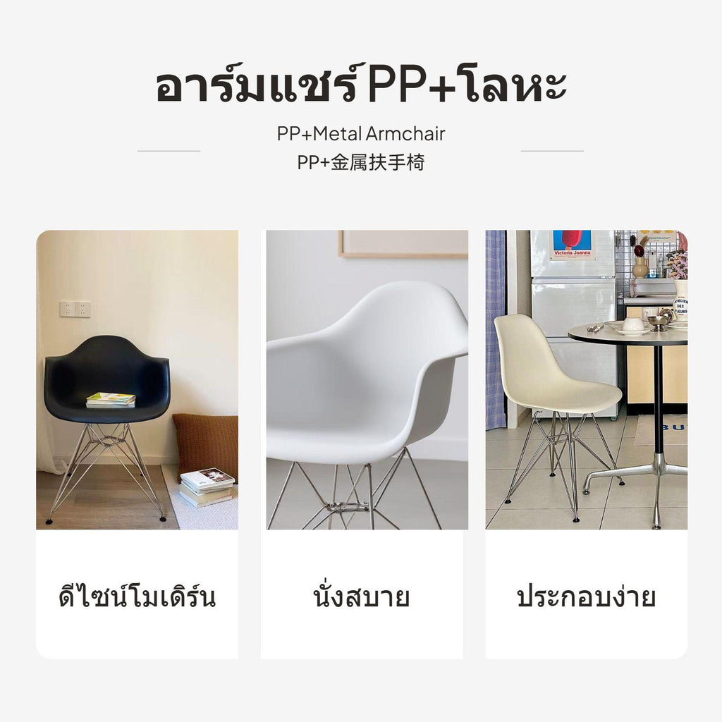 [adaptable Eames Armchair] This Eames armchair blends modern-eramodern-era-1900s, Nordic, and modern design, adding sophistication to dining rooms, offices, and lounges.[Comfortable single-Piece Seat] Ergonomically designed single-piece seat base and armrests provide outstanding support, ensuring a relaxed seating sensation during work, dining, or leisure.[Sturdy Metal Eiffel Base] The famous 'Eiffel Tower' metal wire base offers stable support and a sleek outline, while anti-slip feet keep your floors safe and enhance sturdiness.[Stylish Material & Color choices] Choose from matte PP in black or ivory for a timeless look, or adopt the contemporary atmosphere of the transparent option, fitting various interior styles.[Easy Assembly & Multi-Scene Use] Supports assembly and disassembly for convenient transport. perfect as a dining chair, lounge chair, or office seating, it meets diverse needs with design and practical advantages.Specification: