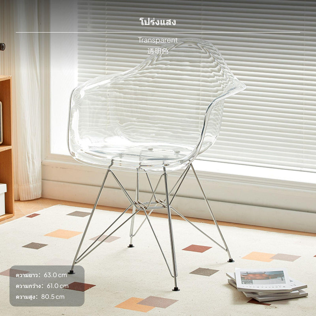Eames Armchair, Modern Nordic Accent Chair, Transparent & PP Seat, Metal Eiffel Base for Dining, Office, Lounge Transparent