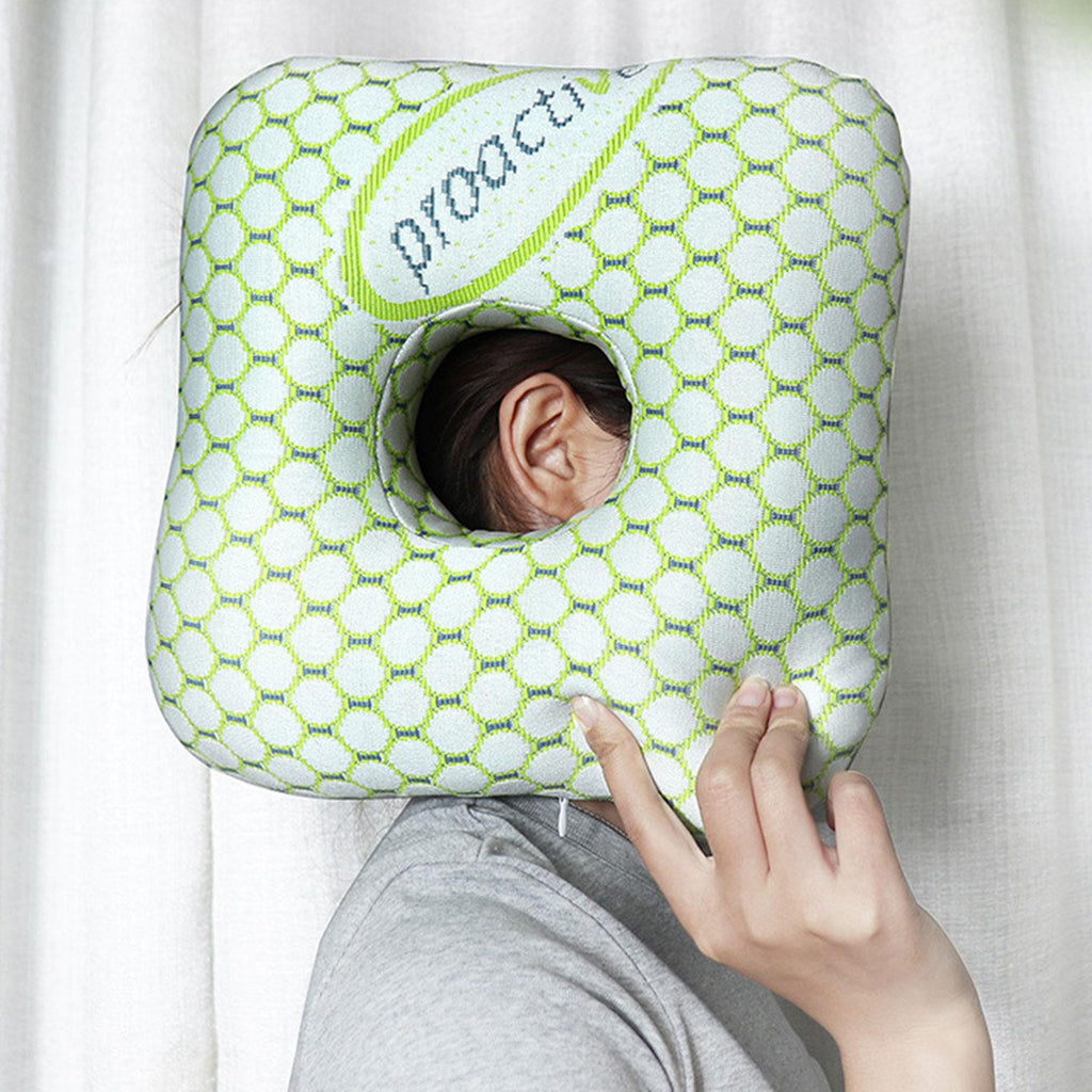 【Compact Size for Versatility】: With dimensions of 11.02inchx11.02inchx2.76inch, this Pillow with an Ear Hole is perfectly sized to fit various sleeping positions while being easy to carry or store when not in use