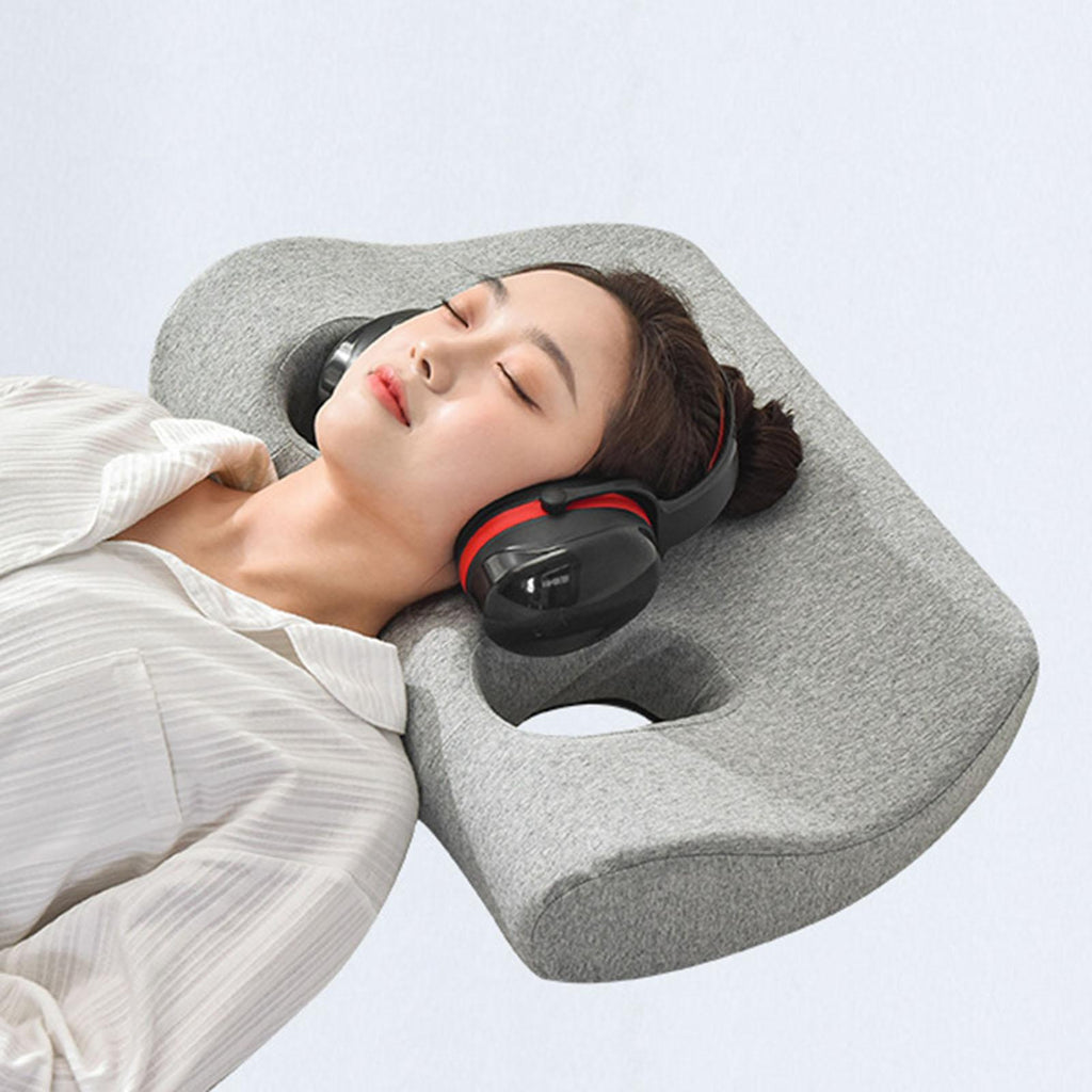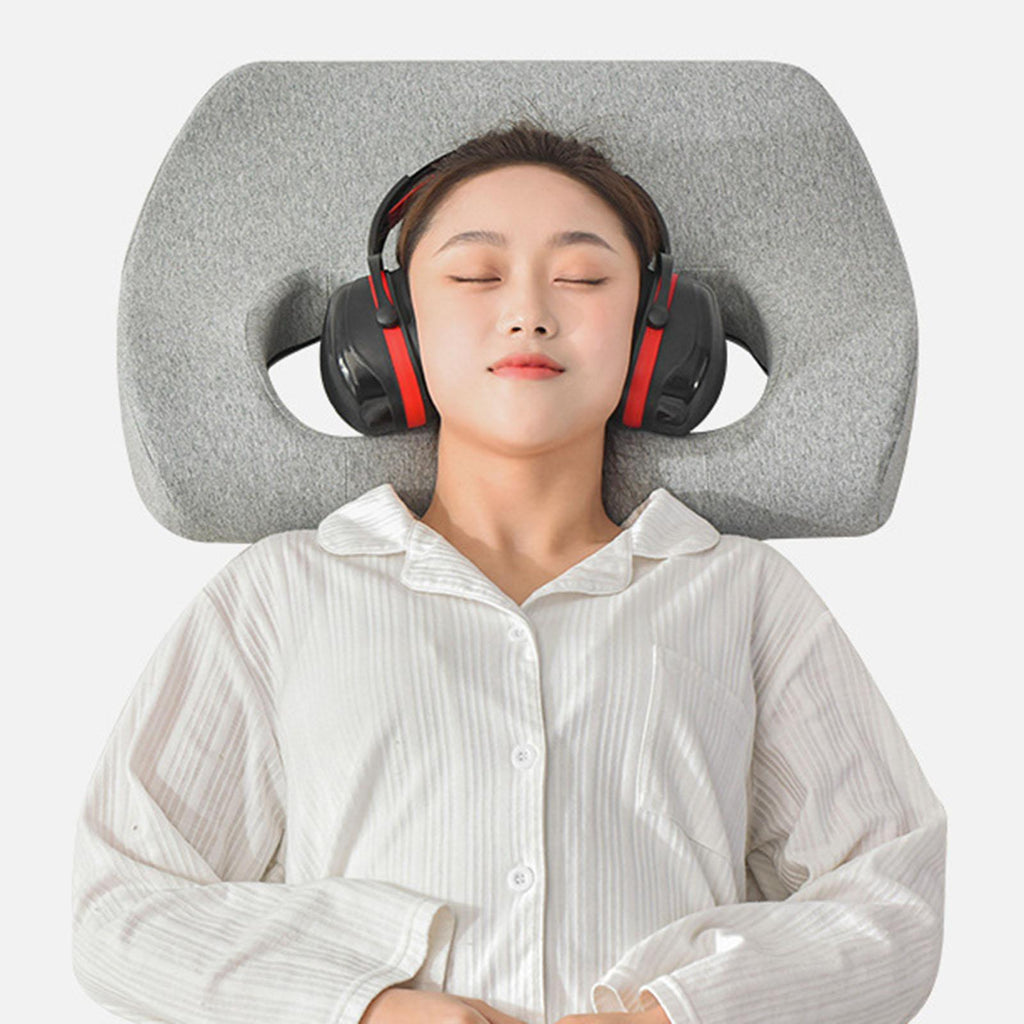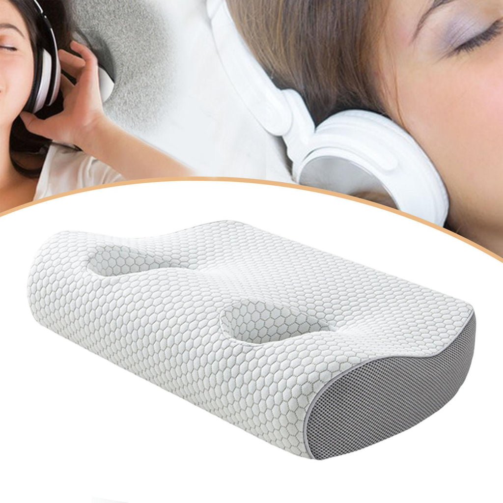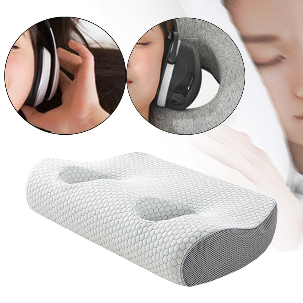 Ear Pillow with Holes Ergonomic Memory Foam for Side Sleepers for Headphones Gray