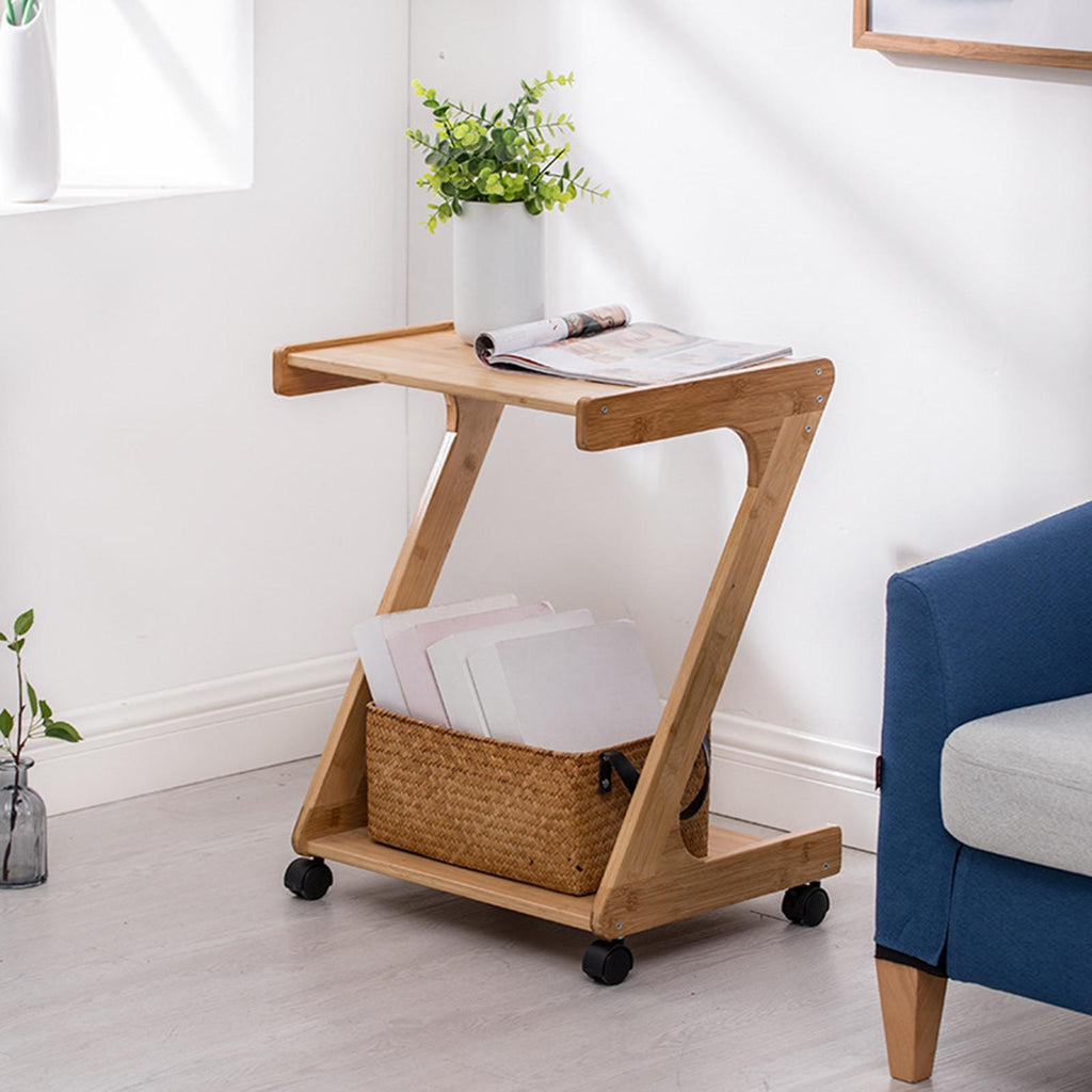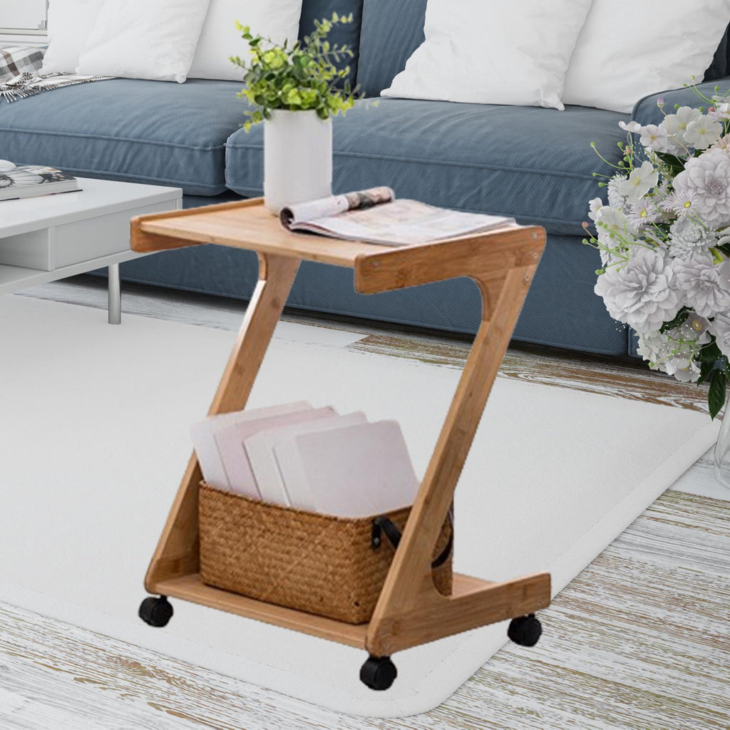 Maxbell End Table with Rolling Wheel Sofa Side Table for Bedroom Office Small Space Brown
