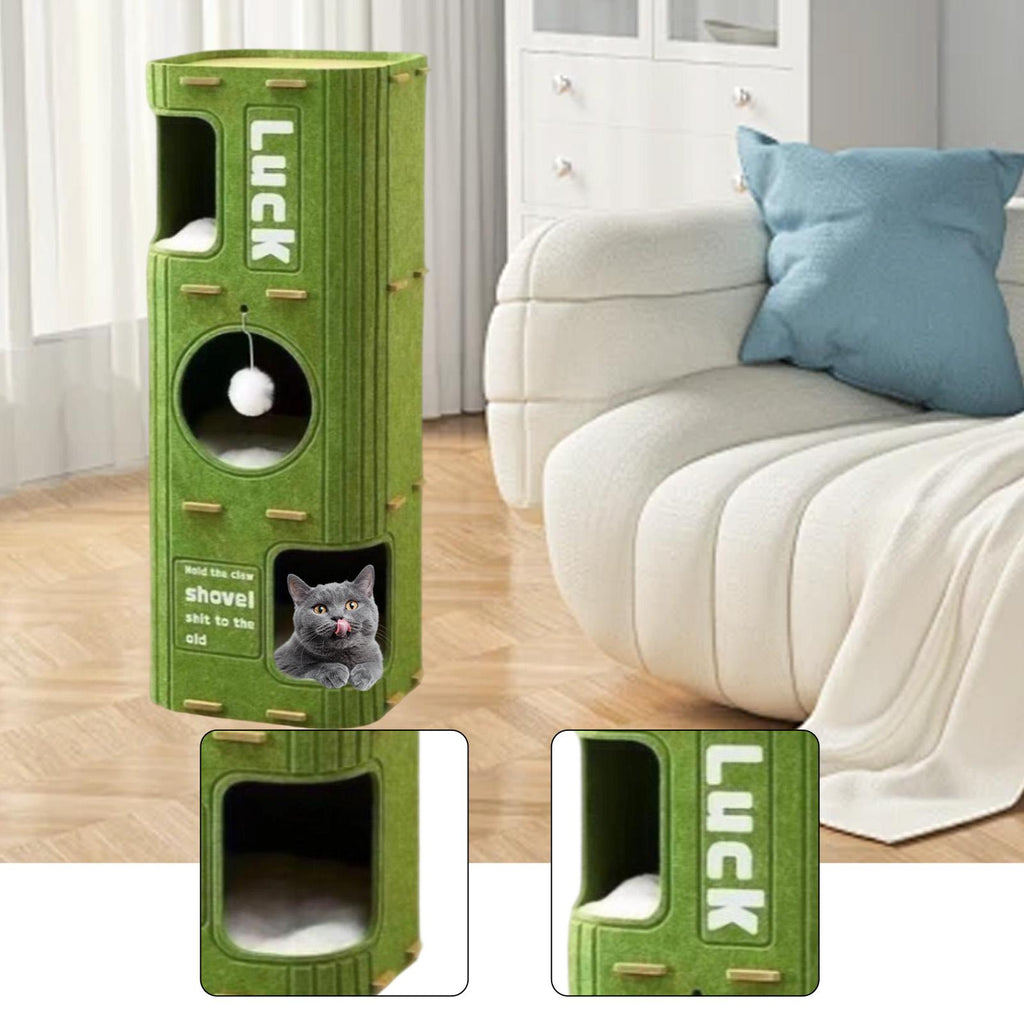 Maxbell Felt Cat House 3 Story Multifunctional for Indoor Cats Kittens Cat Furniture Green