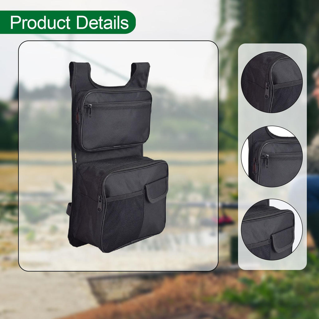 【Versatile Storage Design】: This fishing chair backrest storage bag features two side bottle holders, a mesh pocket, and zipper pockets for storing fishing tackles, phones, personal items, umbrellas, or cups