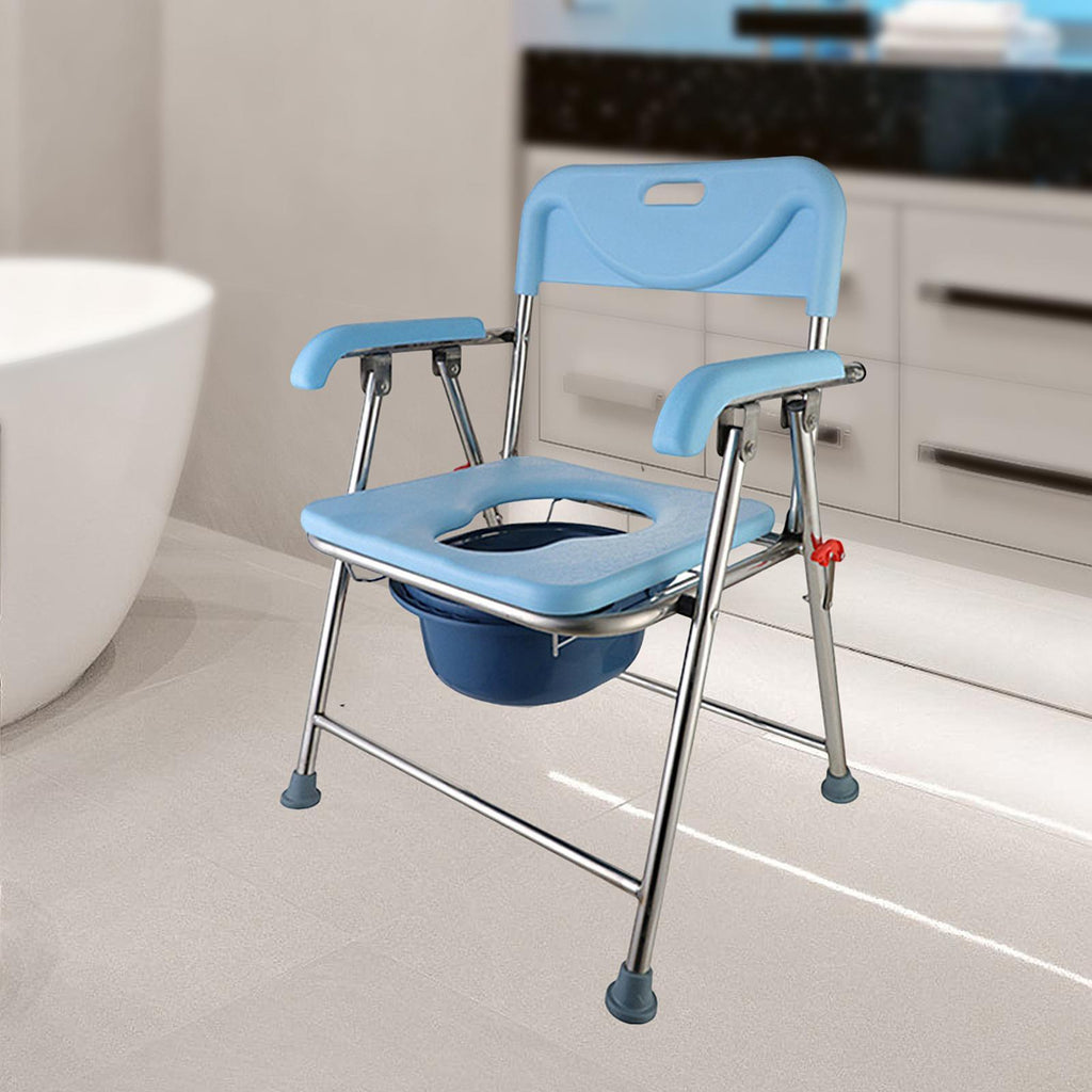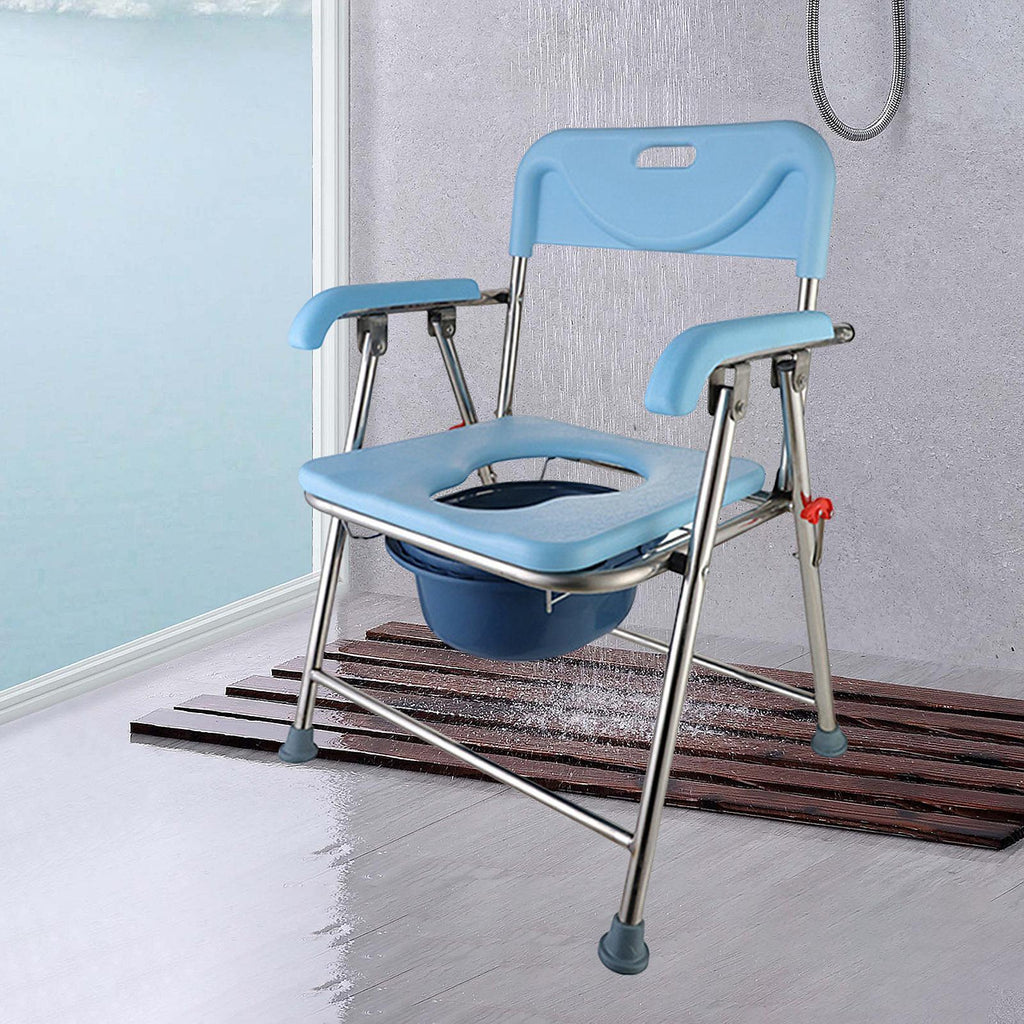 【Material】: This Folding Bedside Commode Chair is made of metal, ensuring stability for the elderly. It can be folded for easy storage, saving you valuable space