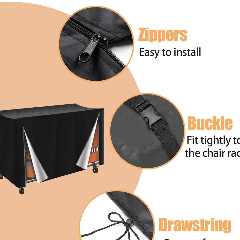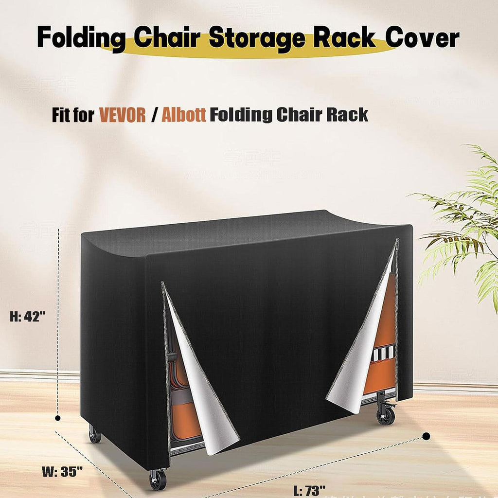 - 【Fit】With a generous size of 186cmx89cmx107cm/73.23inchx35.04inchx42.13inch, this Folding Chair Rack Cover is suitable for most indoor and outdoor folding chair storage racks or trolley carts