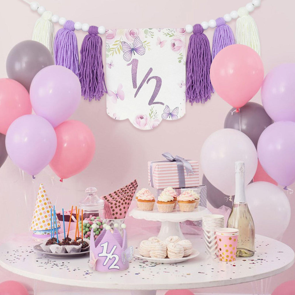 Maxbell Half Birthday High Chair Banner Creative for Theme Party Supplies Boys Girls With Hat