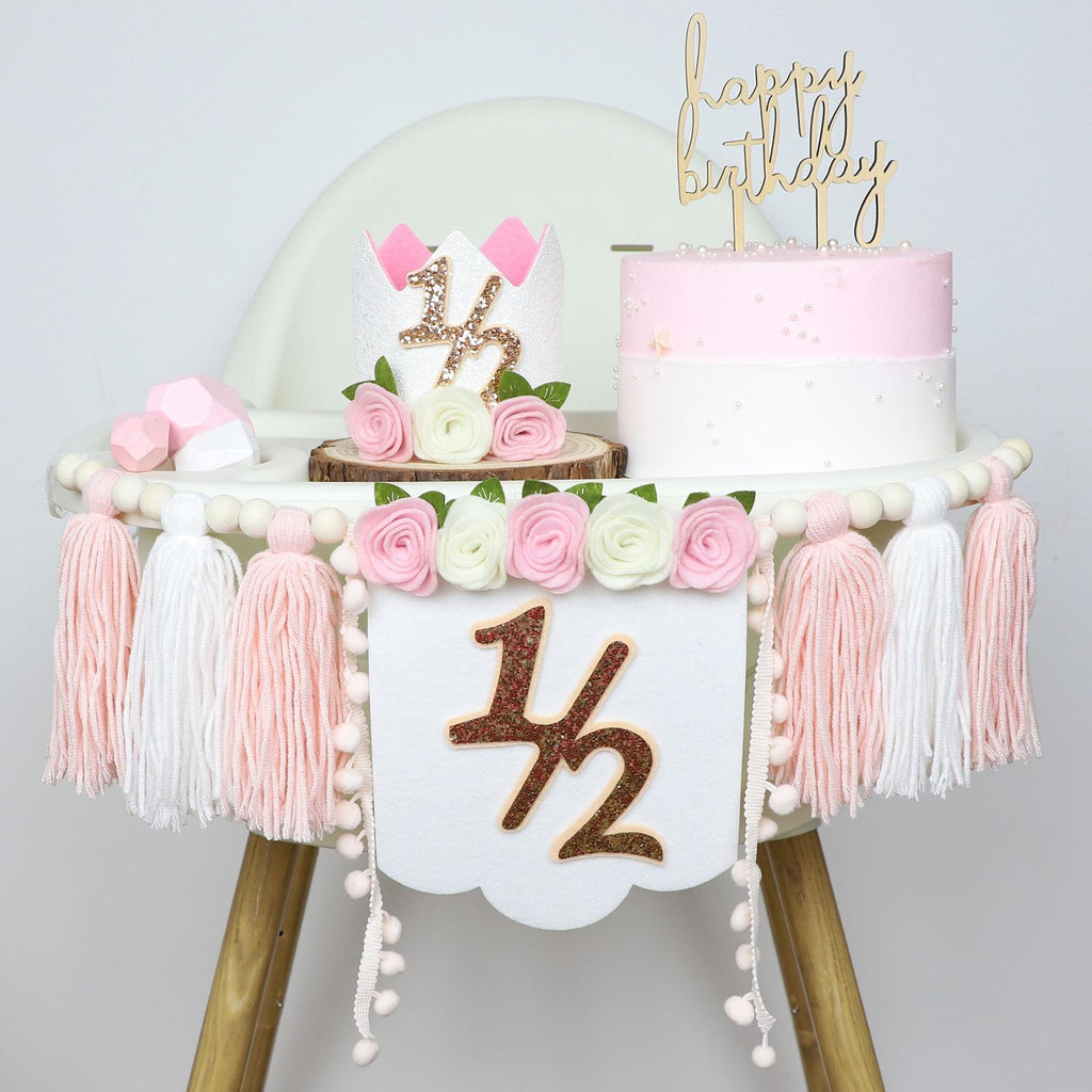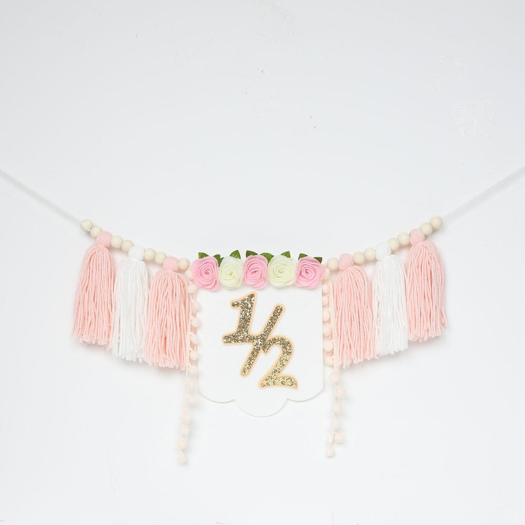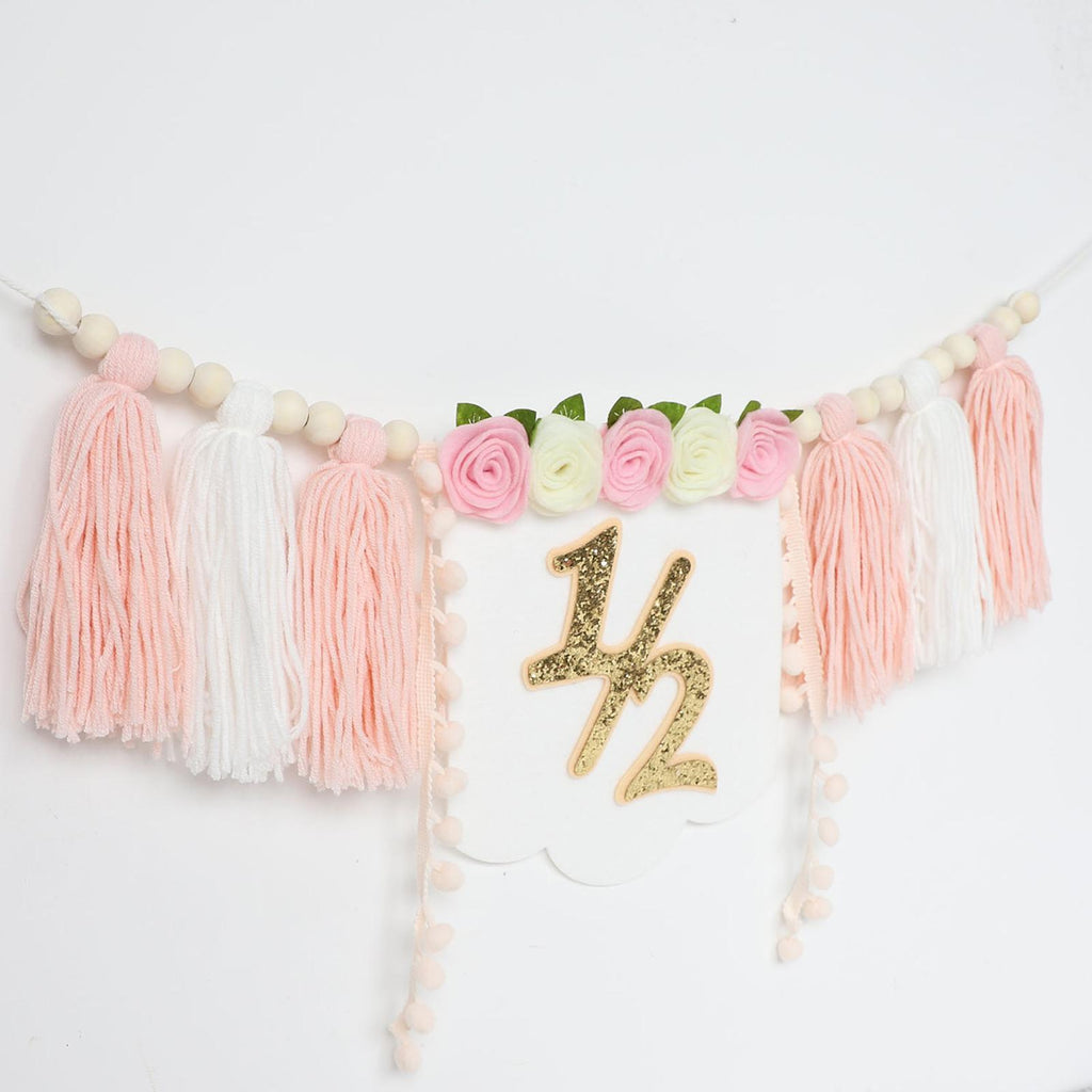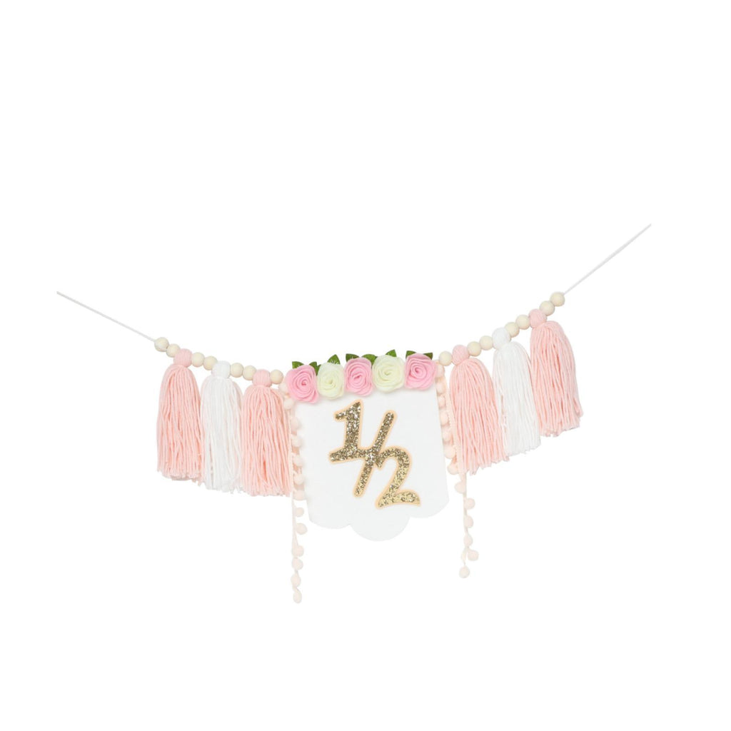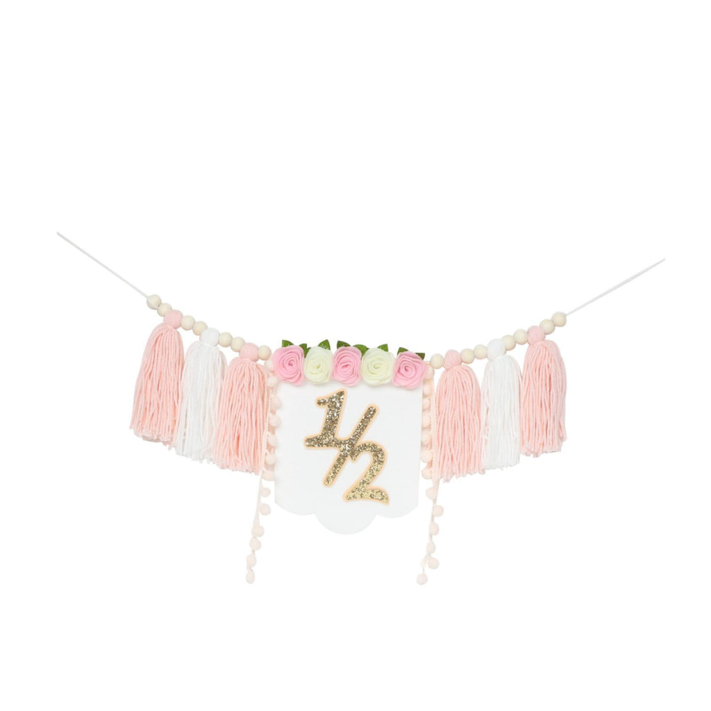 Maxbell Half Birthday Highchair Banner Backdrop Decor for Photo Prop Gift Boys Girls Pink No Hat