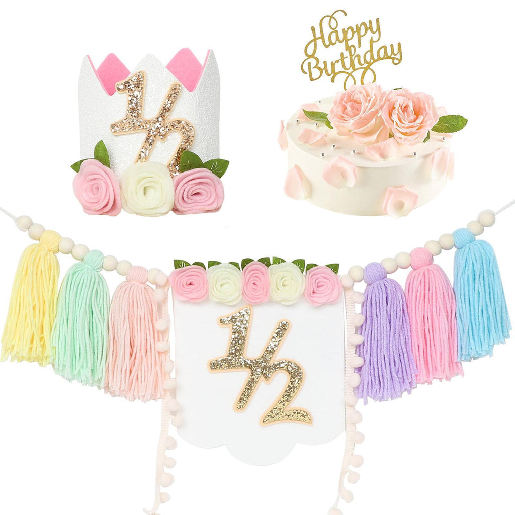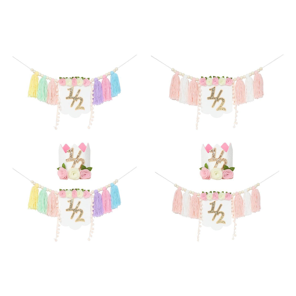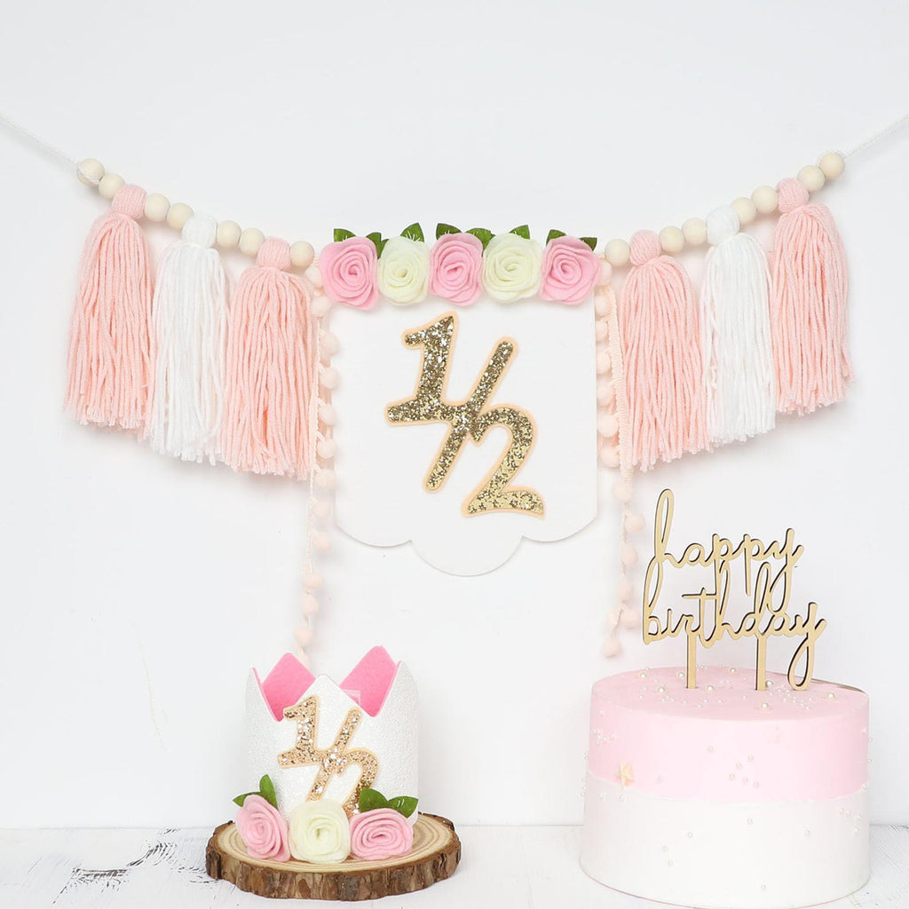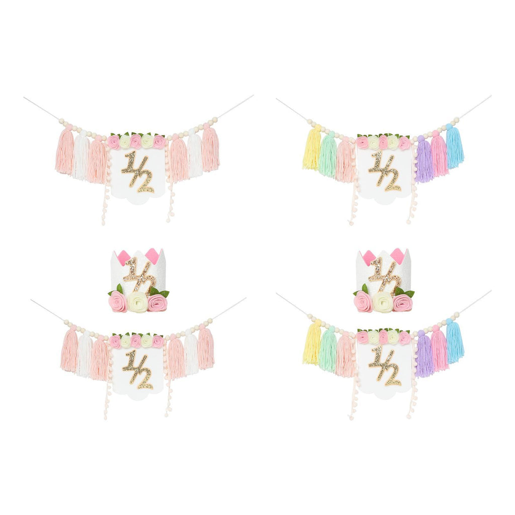 Maxbell Half Birthday Highchair Banner Backdrop Decor for Photo Prop Gift Boys Girls Pink No Hat