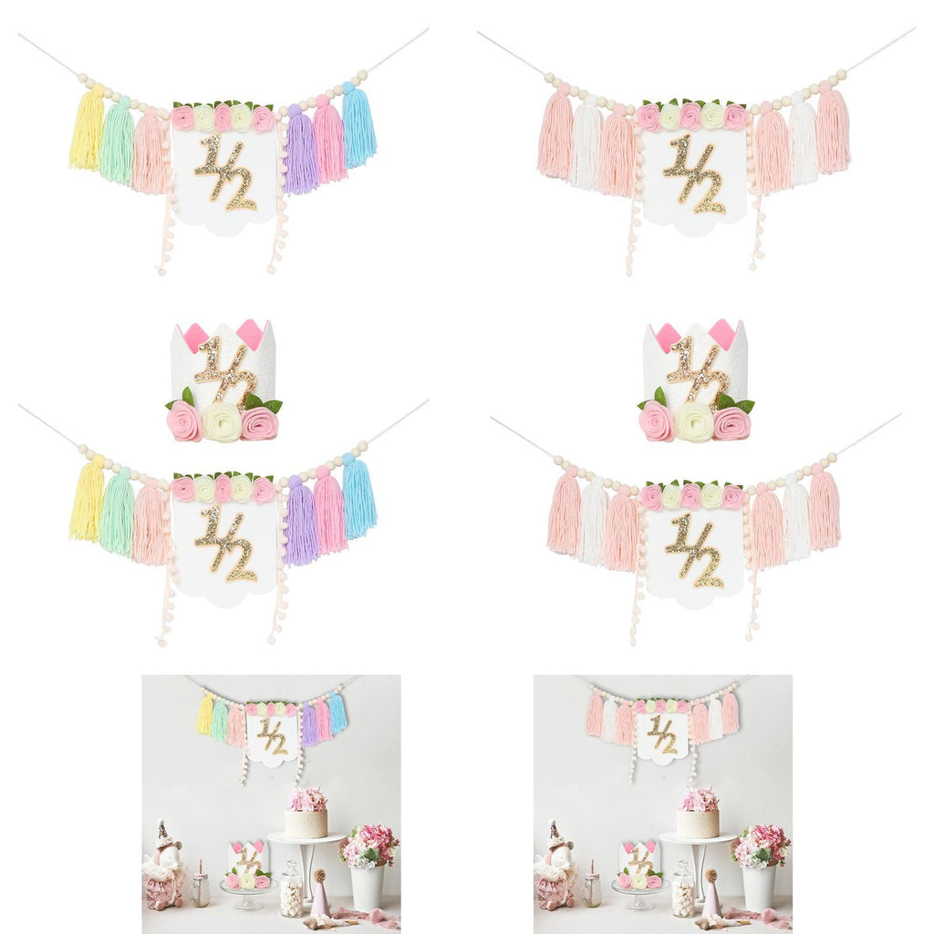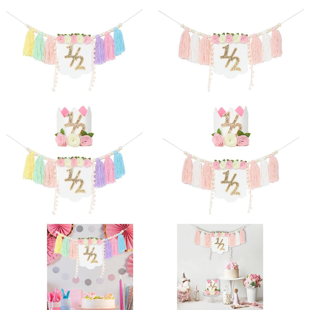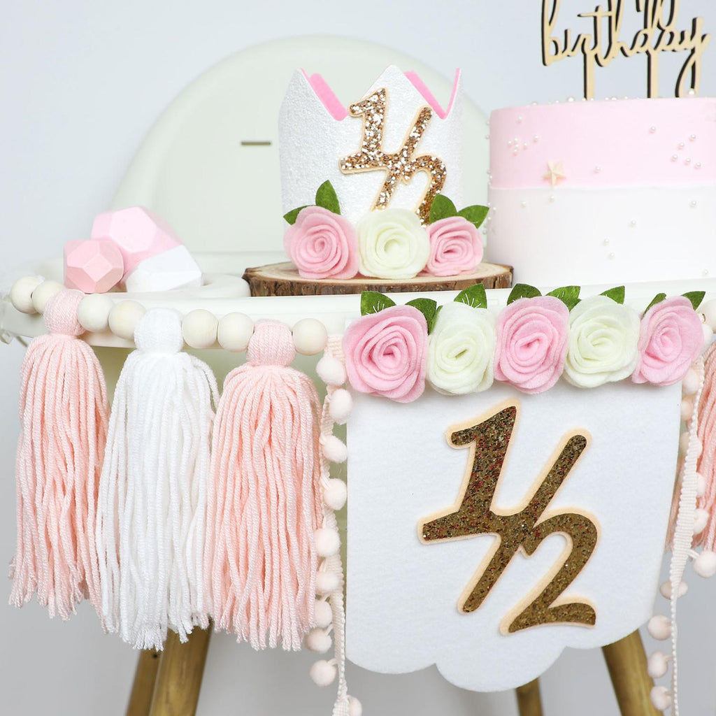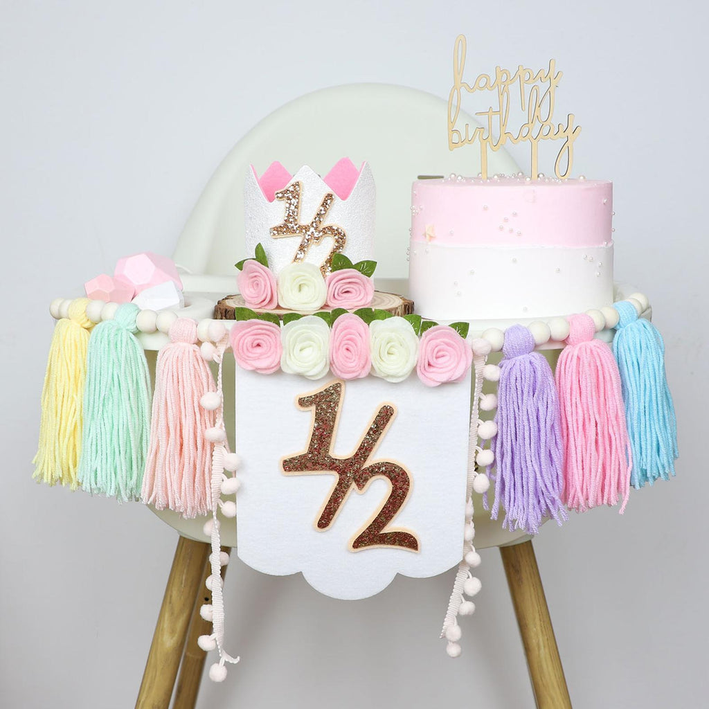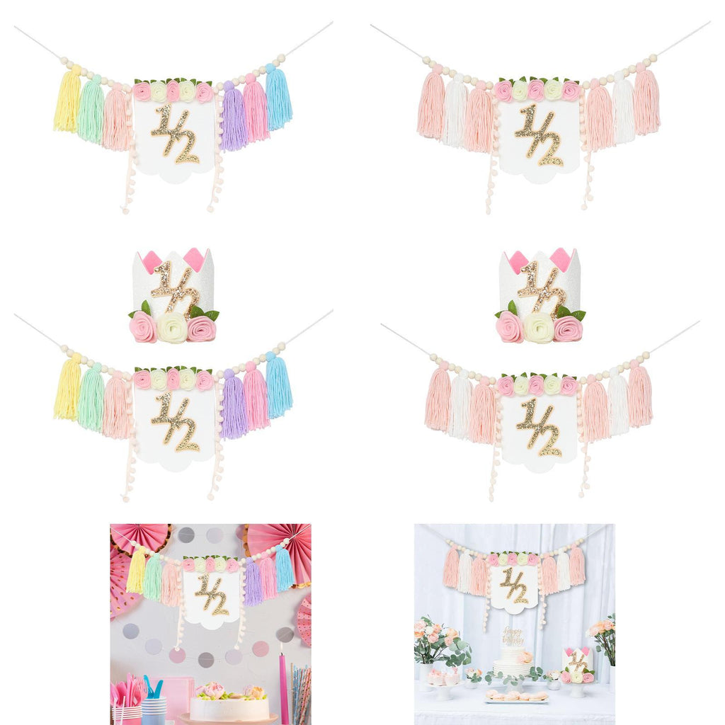 Maxbell Half Birthday Highchair Banner Backdrop Decor for Photo Prop Gift Boys Girls Pink No Hat