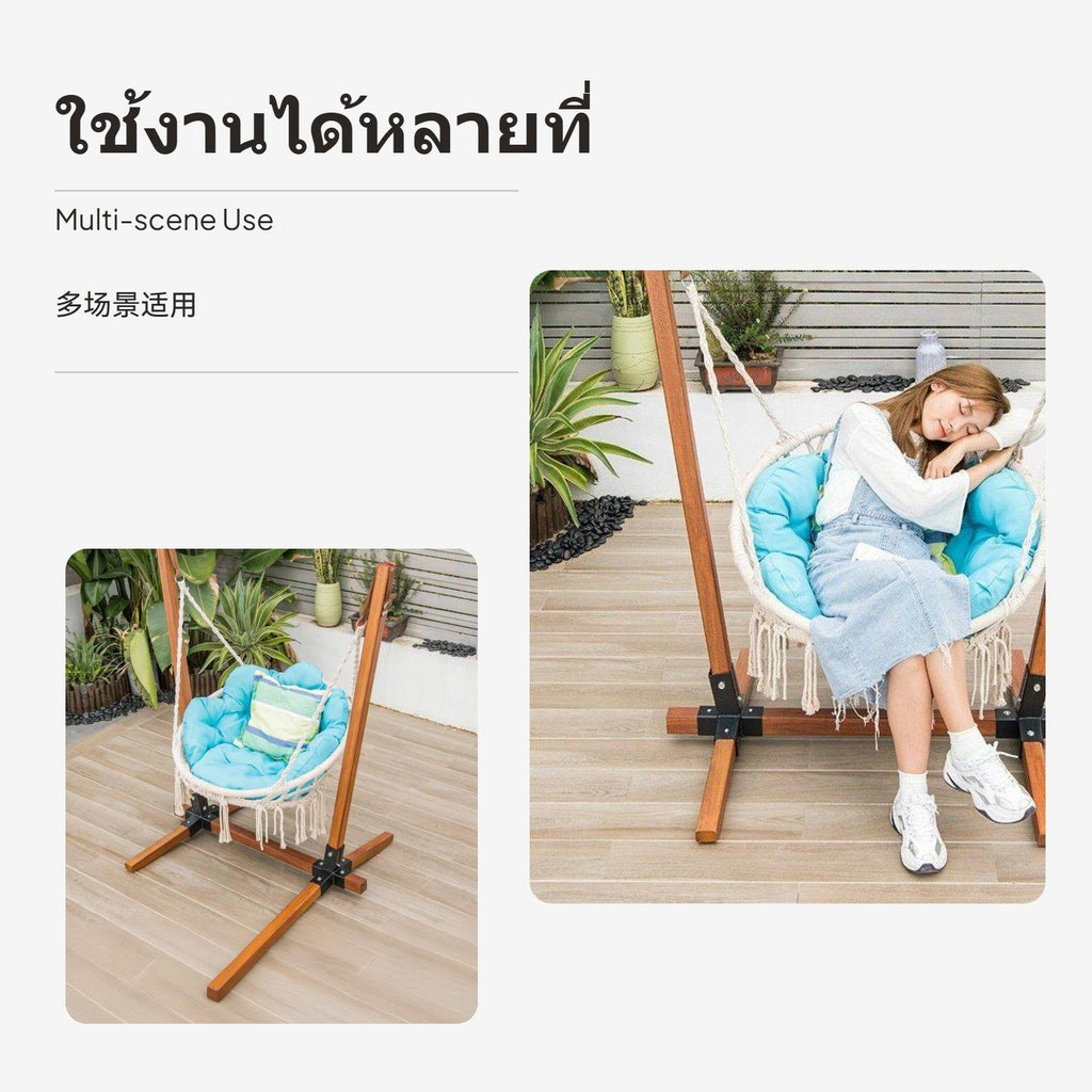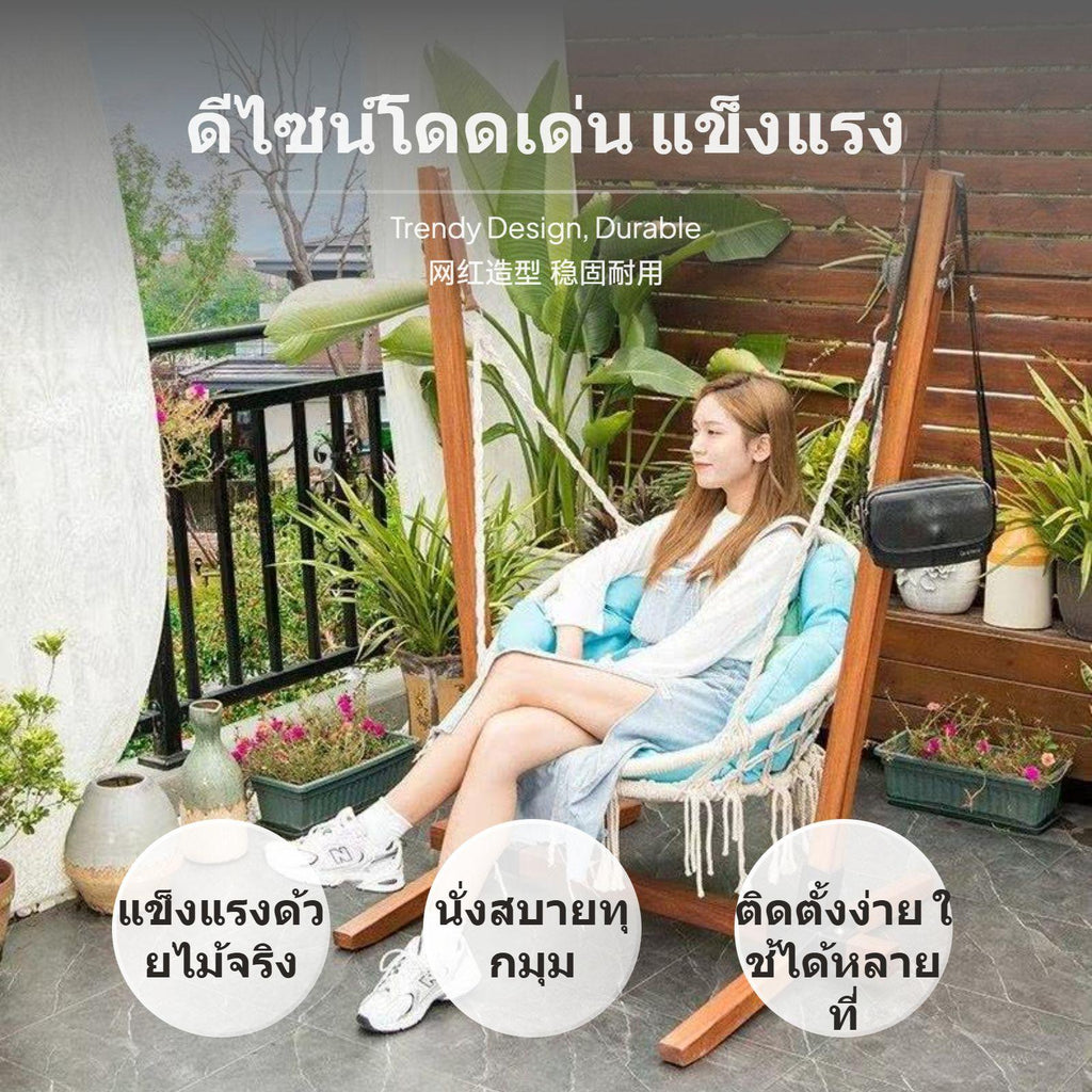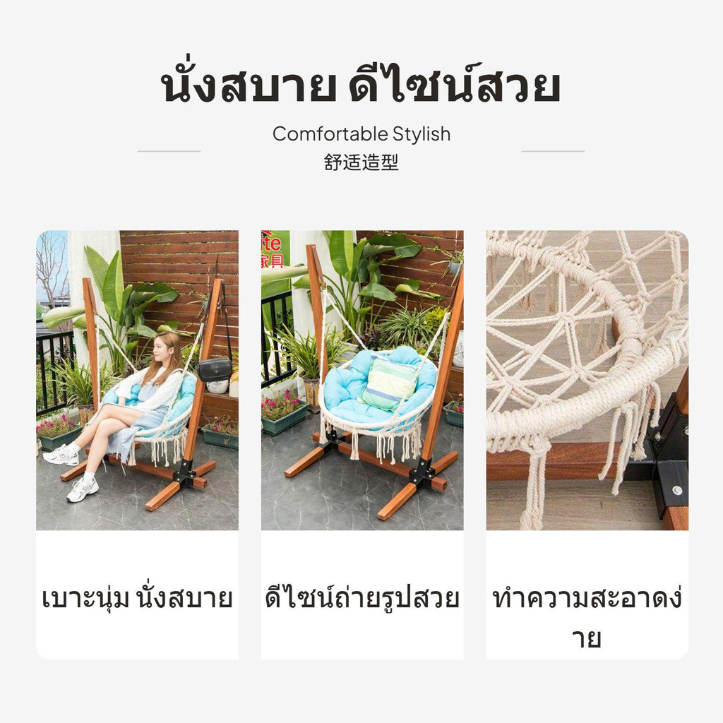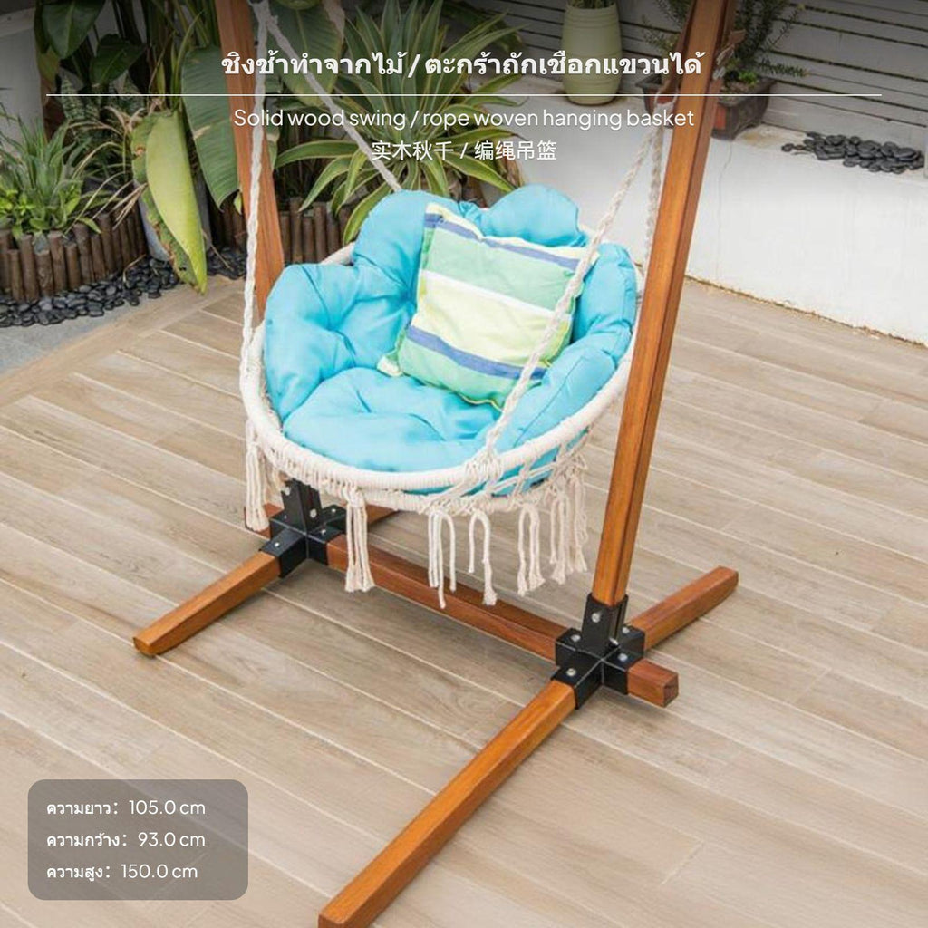 [Enjoy Relaxation Anywhere] suspended chair chair and hanging basket combine sturdy hardwood and linen weave linen woven design, making it perfect for balcony, garden, patio, or indoor resting corners.[Stable dependable Support] Featuring a robust spruce wood frame with 51mm thickened pillars, the swing bed basket comfortably holds multiple adults while maintaining stability.[Comfortable Sitting sensation] organic fiber weave seat and backrest are handwoven, paired with a thickened padding in crisp navy and a striped pillow, delivering heightened comfort for perusing or resting.[Flexible & Adjustable Use] Equipped with an adjustable strap, this hanginging seat chair can be easily adapted to different heights and spaces, providing personalized seating arrangements.[Easy to Move & Assemble] space-saving design measuring 105cm x 93cm x 150cm allows this lounger to become moved and installed effortlessly; step-by-step guide instructions are provided for hassleeffortless assembly.Specification: