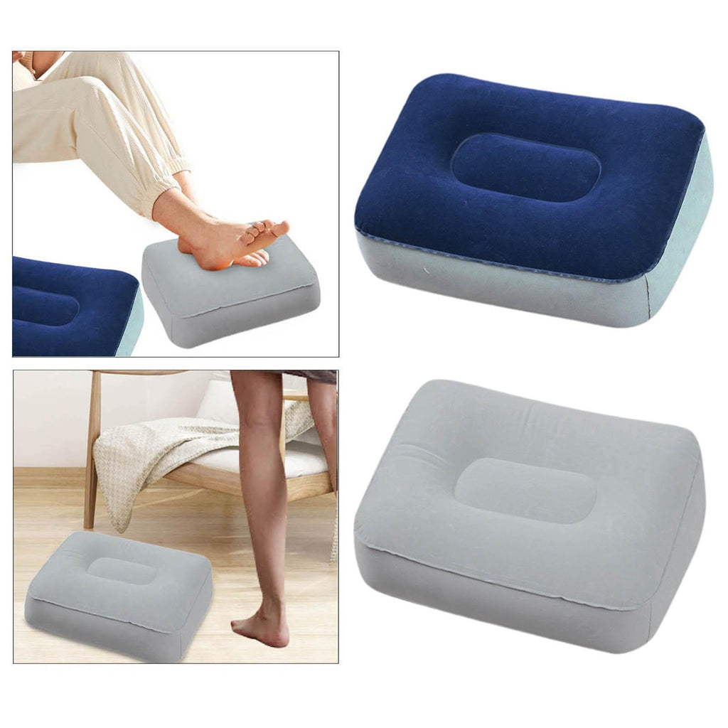 Maxbell Inflatable Foot Pillow Soft Under Desk Foot Support for Airplane Couch Train Blue Gray