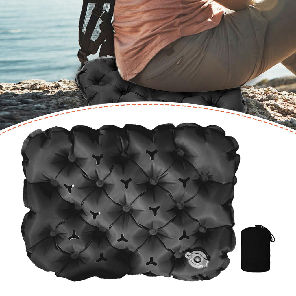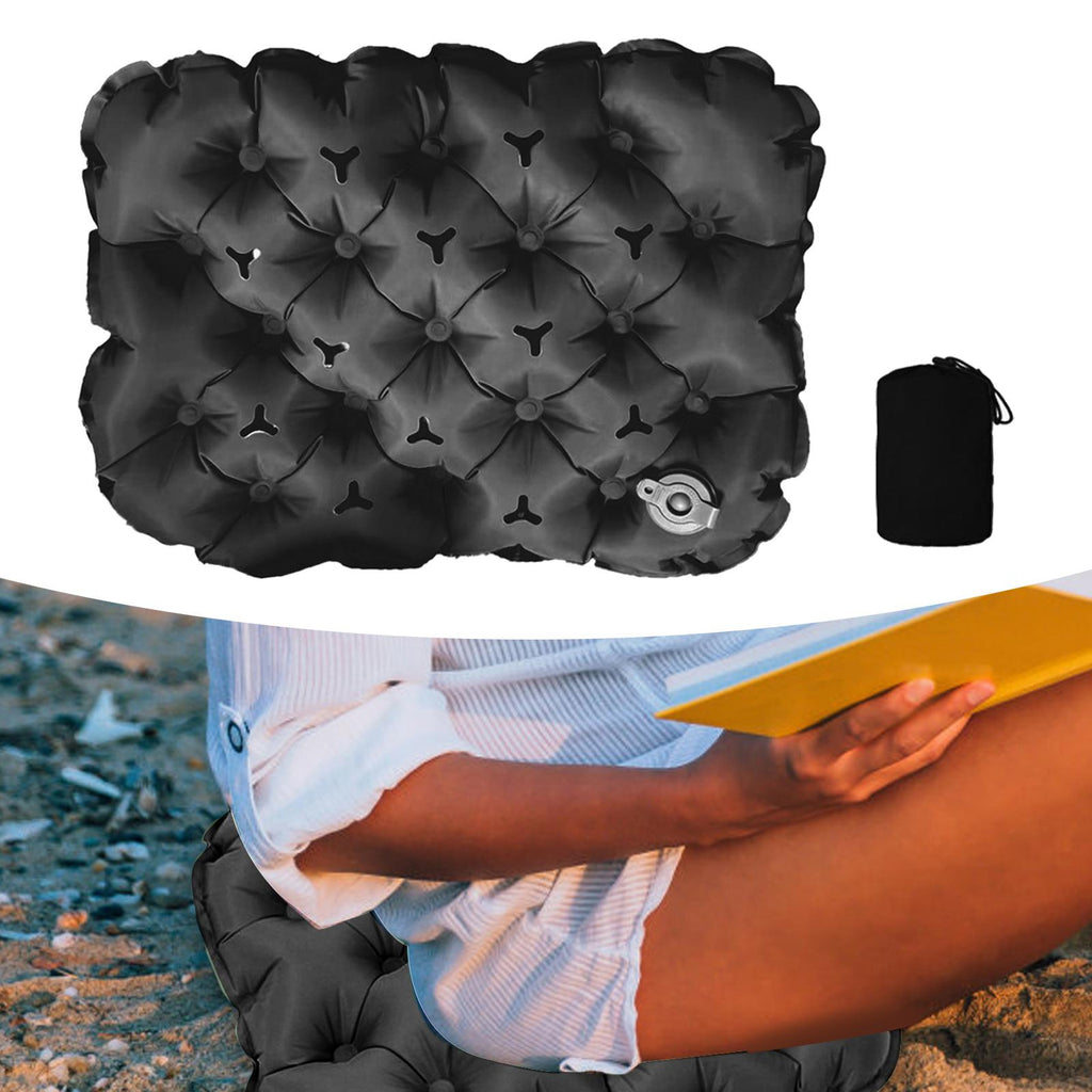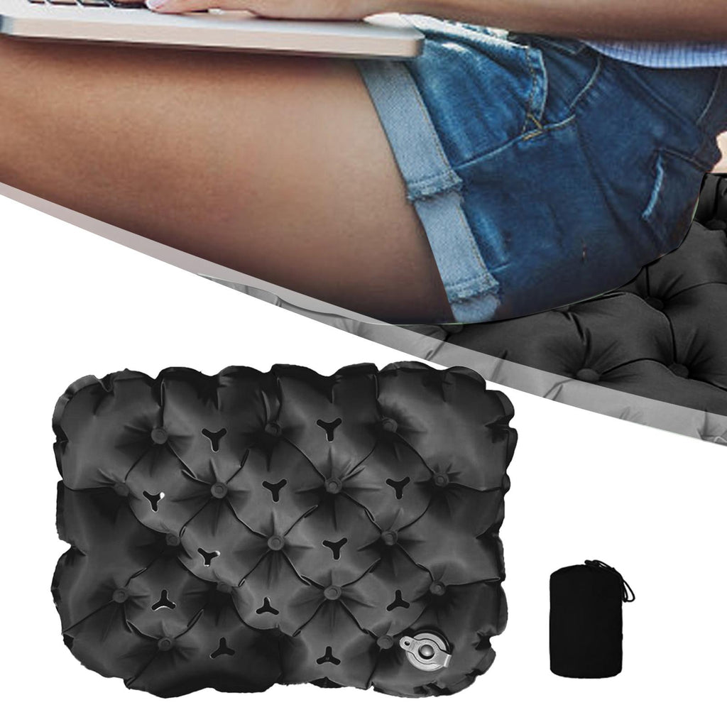 Inflatable Seat Cushion Comfortable Soft Sit Mat Pad for Airplane Lawn Plane black