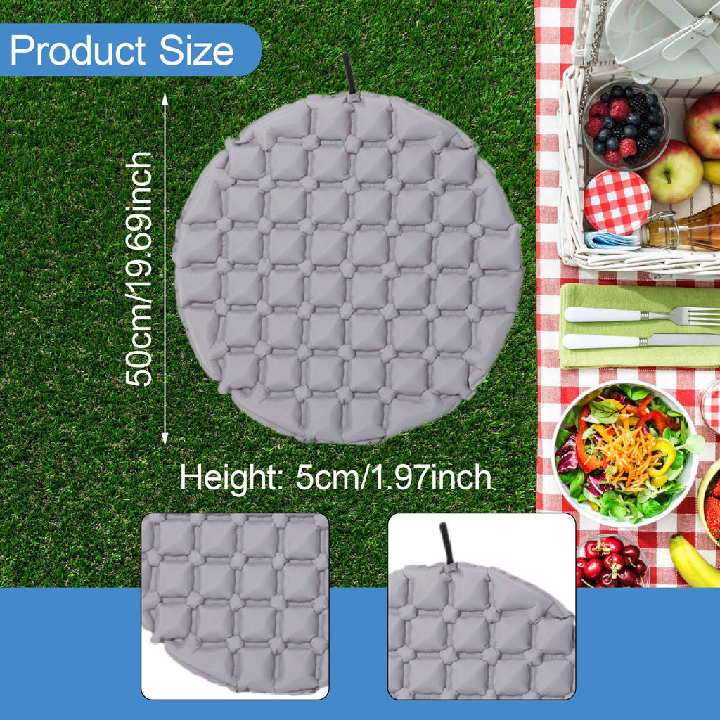 【Size】: Inflatable 5cmx50cmx50cm/1.97inchx19.69inchx19.69inch, Storage 3cmx9cmx10cm/1.18inchx3.54inchx3.94inch. Designed with a lightweight structure, this unique round shape inflatable cushion is easy to portable your travels