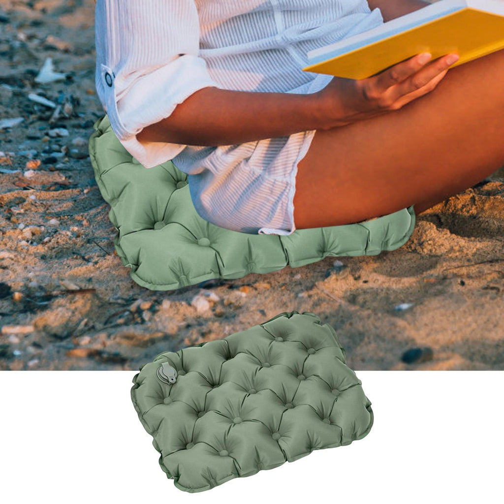 Maxbell Inflatable Seat Cushion Folding Soft Stadium Seat Pad for Walking Beach Lawn olive green