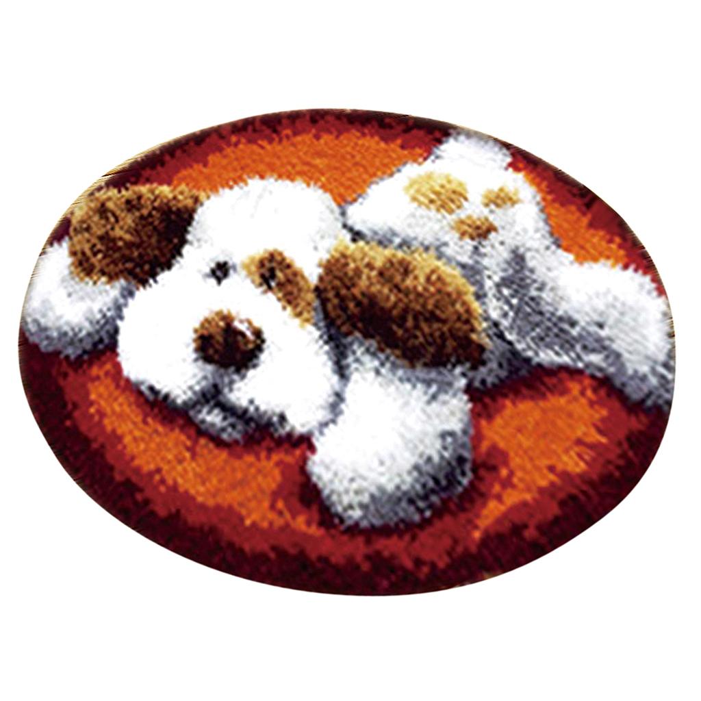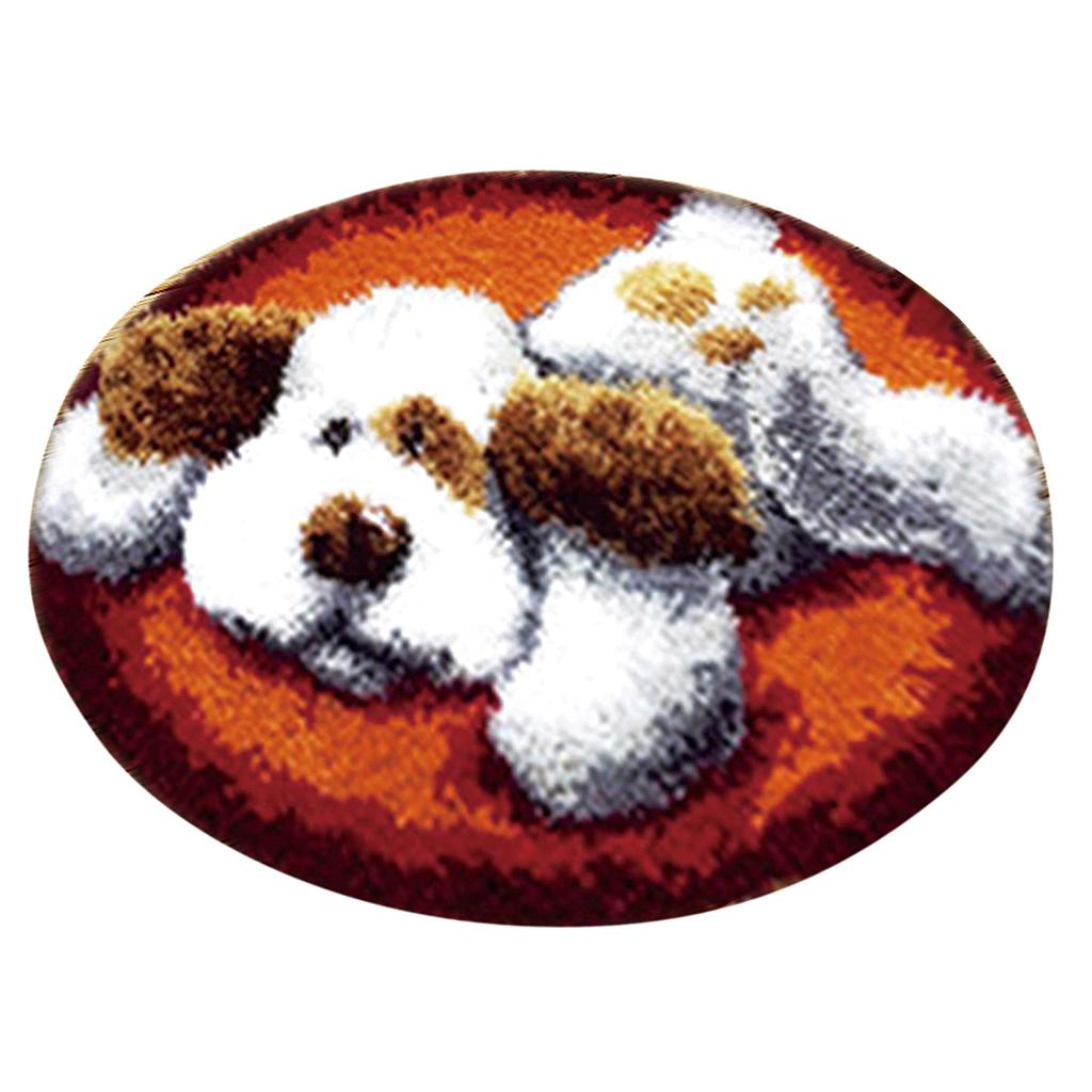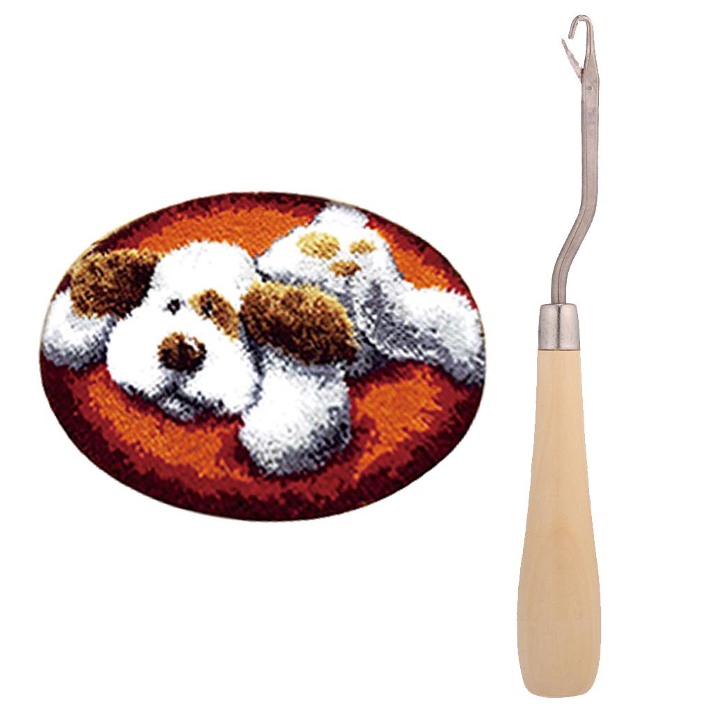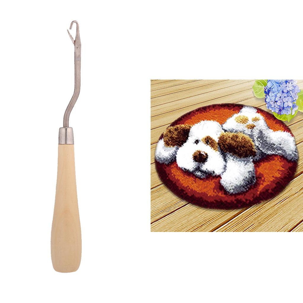 Latch Hook Rug Kits DIY Dog Craft Embroidery Cushion with Wood Crochet Hook