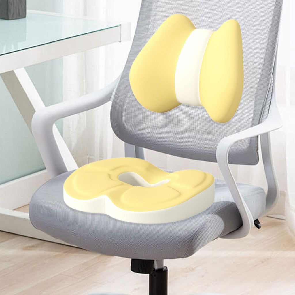 Maxbell Low Back Pillow Chair Cushion and Donut Pillow Hemorrhoid Tailbone Cushion Yellow