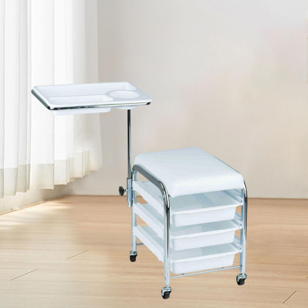Maxbell Manicure Beauty Tool Cart with Wheels Practical Chair Stool for Salon Beauty White