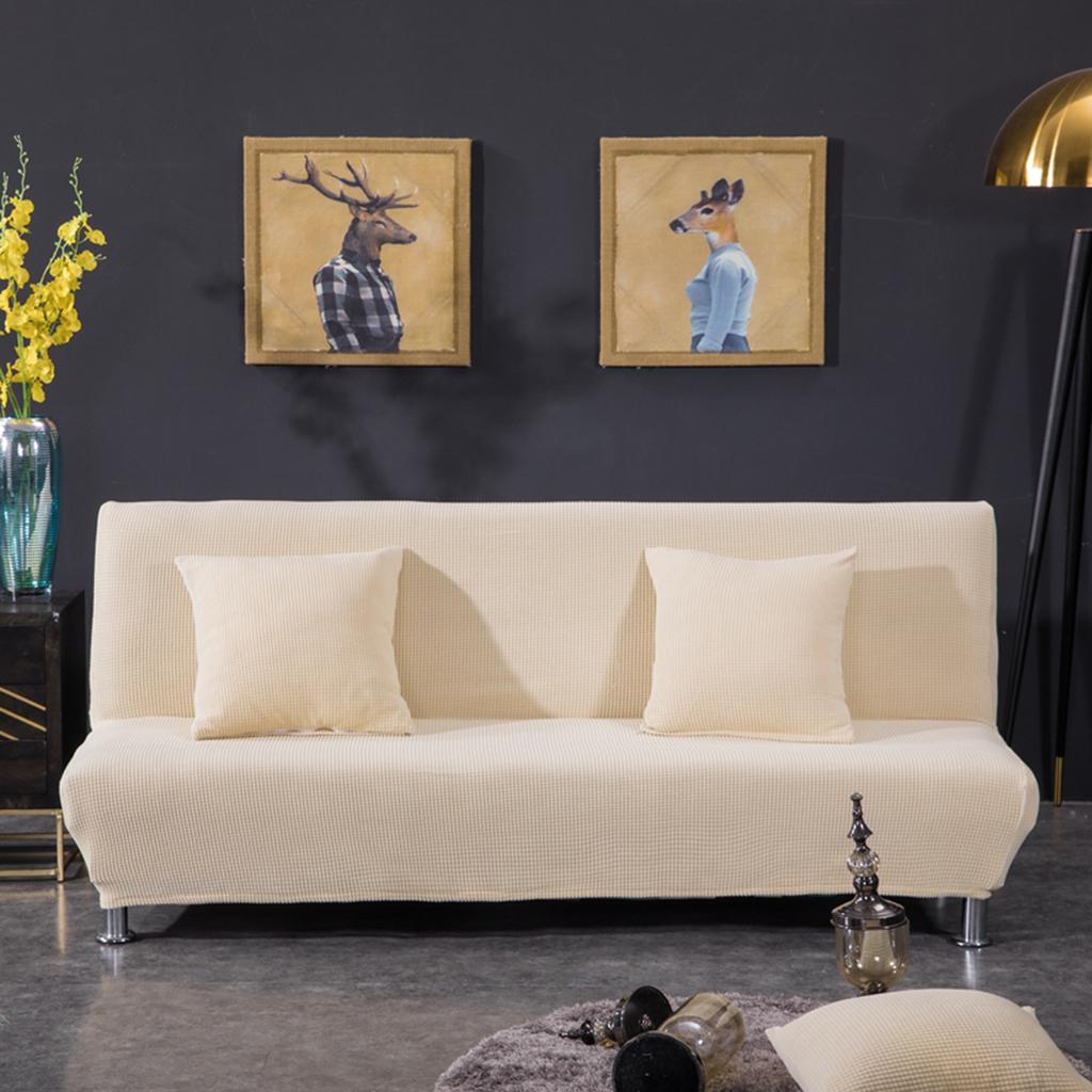 Non-Slip Armless Sofa Cover Full Folding Sofa Bed Slipcover Beige L