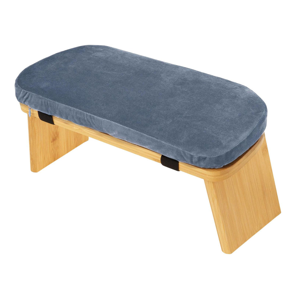 Maxbell Meditation Bench Comfortable with Soft Cushion Folding Wooden Kneeling Stool Gray Blue