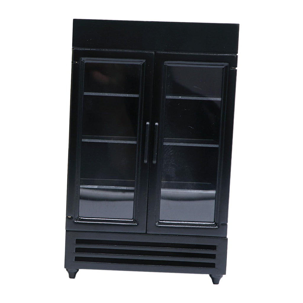 Maxbell Mini 1/12 Dollhouse Refrigerator Freezer Wooden Furniture for Kids Children Black