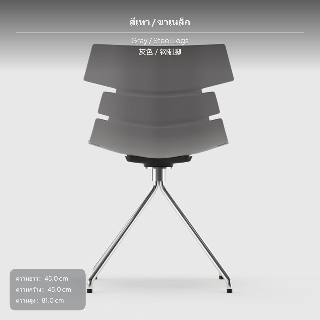 Modern Minimalist Stackable Plastic Chair, Steel Legs, Office & Home, No Armrest Gray Steel Legs