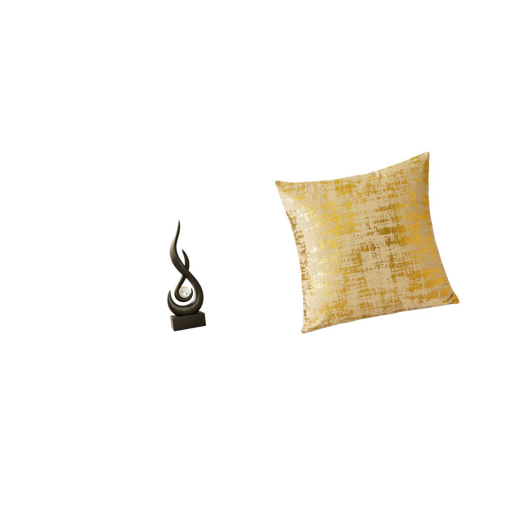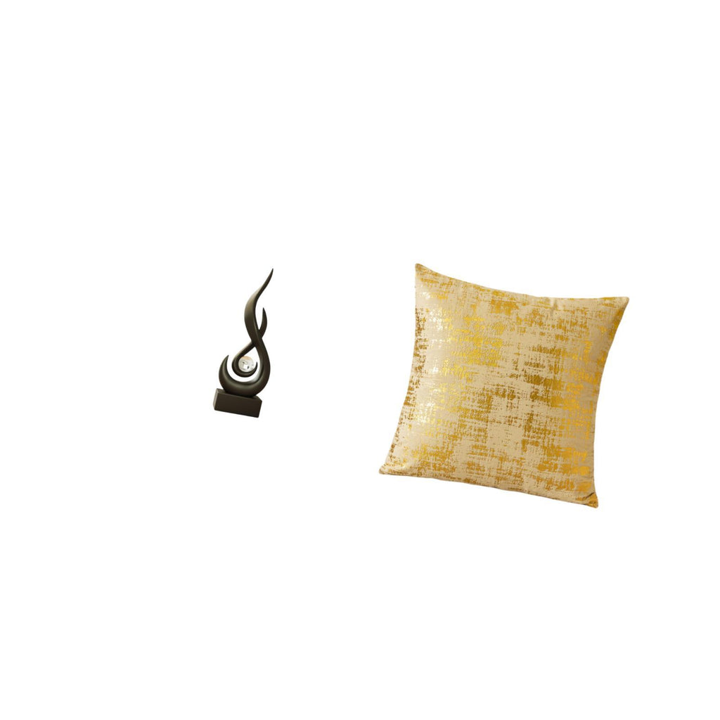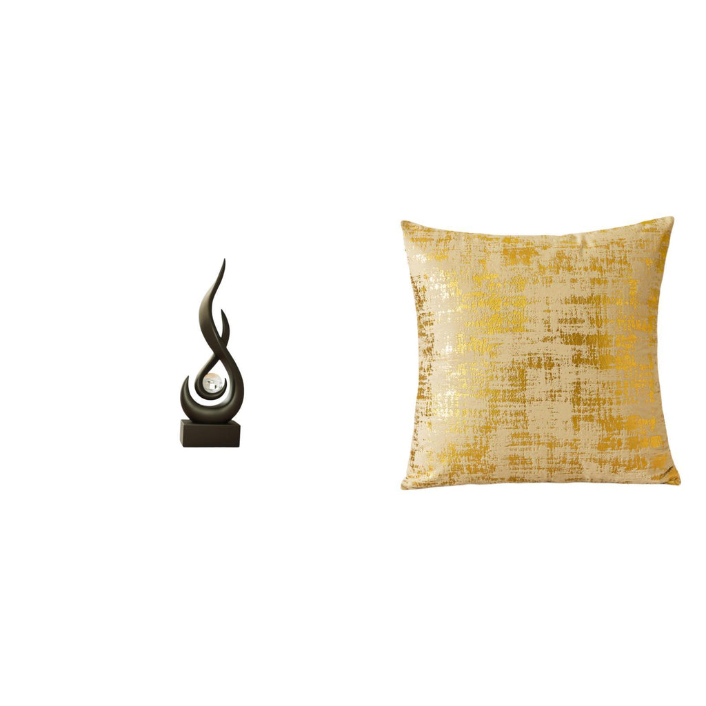 Modern Resin Flame Art Sculpture and Elegant Square Cushion Cover Set for Living Room Office Dorm Car Home Decoration