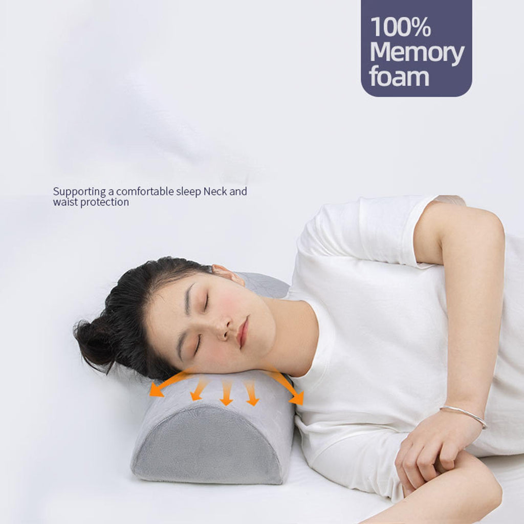 Material: Made from memory foam, this semi-cylindrical pillow provides durability and resilience while maintaining a soft touch against your skin