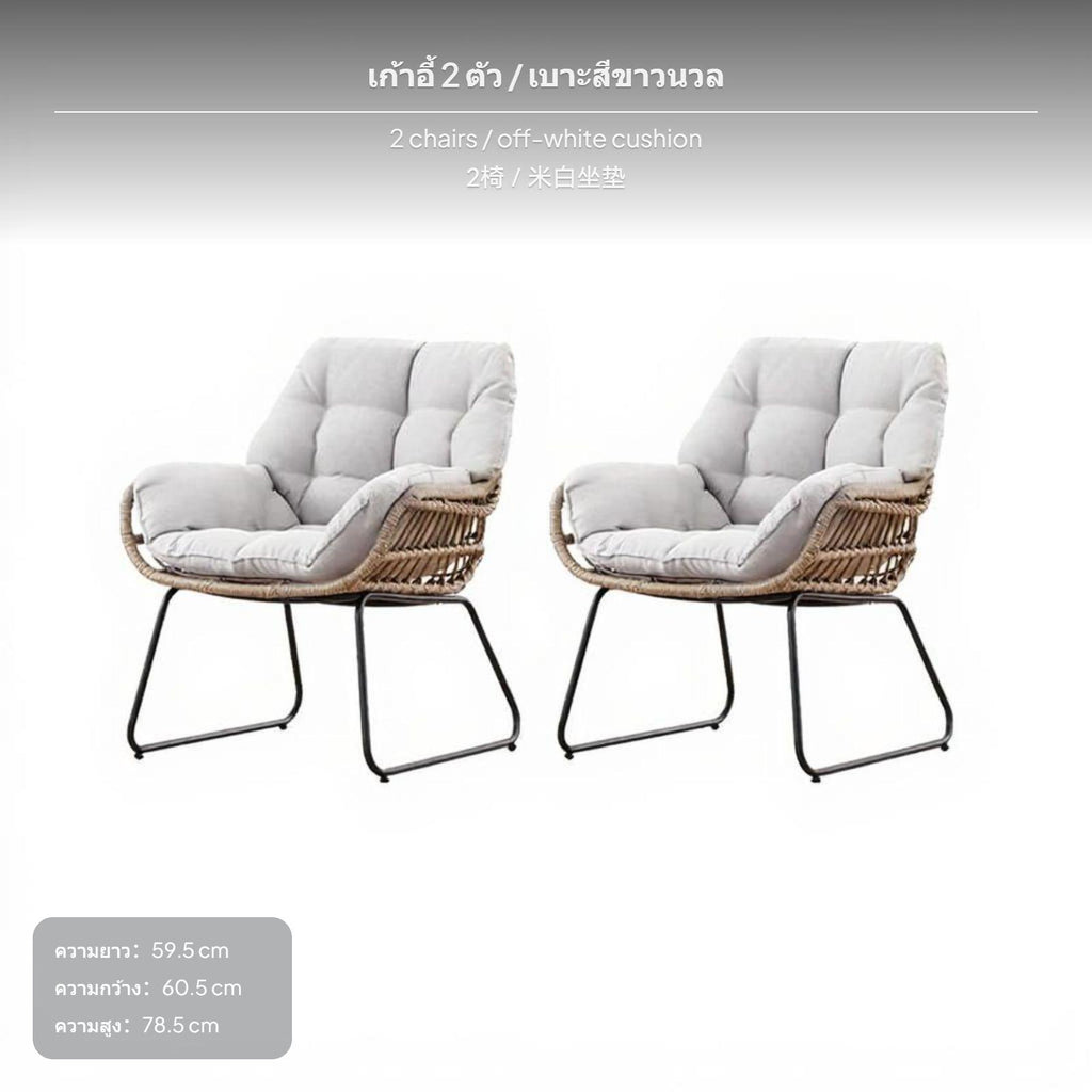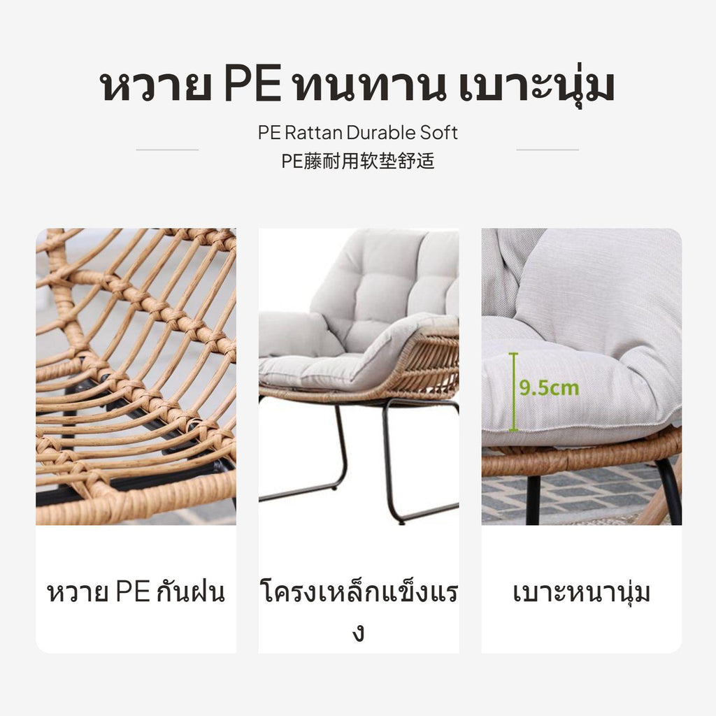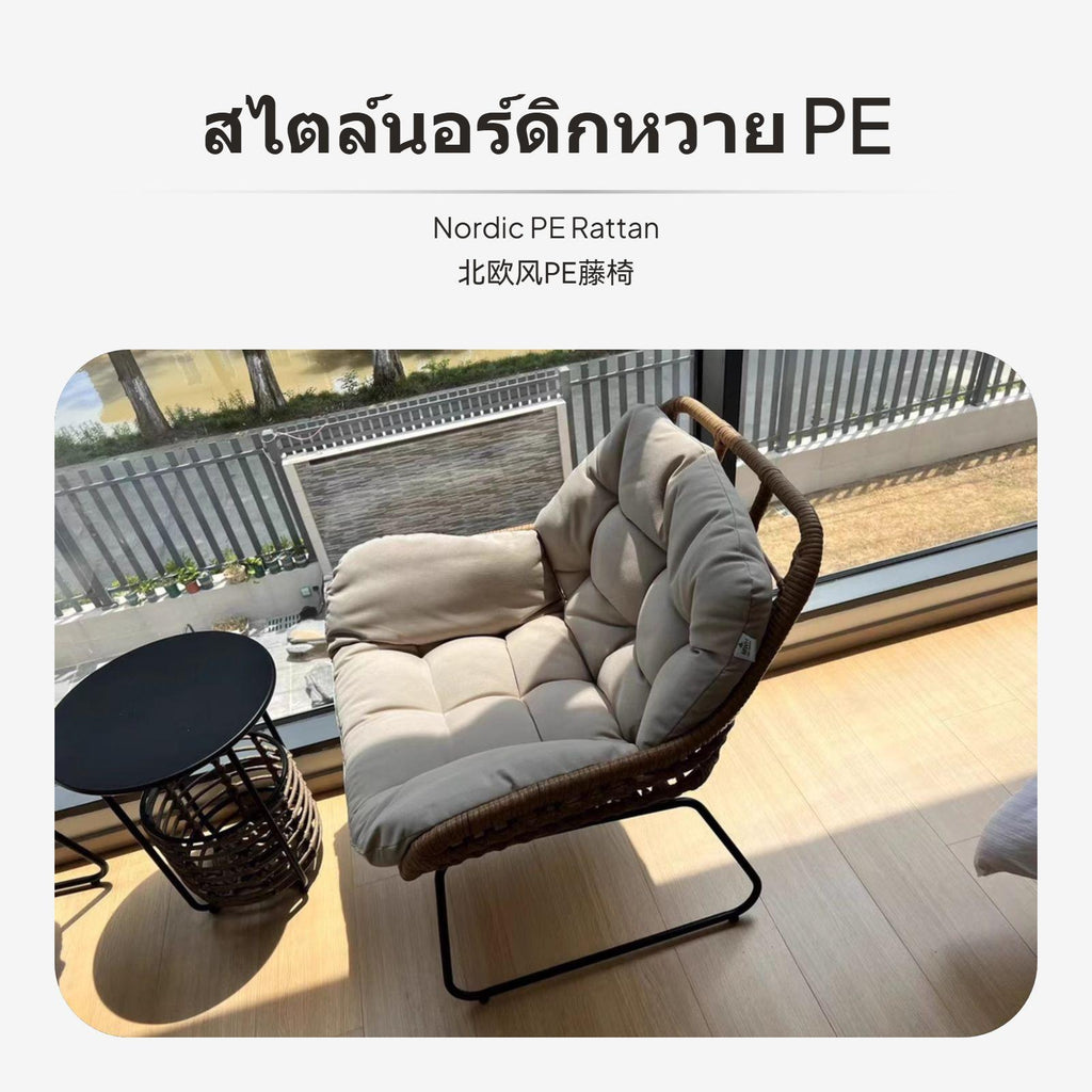 [Complete Outdoor Relaxation Solution] Featuring PE wicker construction and ergonomic design, this Nordic design furniture set brings comfort and sophistication to patios, balconies, cottages, and coffee shops.[adaptable Combination choices] Multiple chair styles and matching tables allow flexible arrangements for dining or leisure, suitable for 2-4 people and available in a variety of hues.[Weather-Resistant & Easy Maintenance] Rainresistant and sun-protective materials combined with removable seat cushions ensure dependable long-term use and convenient cleaning, no regardless the season.[Handwoven Artistic texture] The handmade PE wicker and reinforced steel framework provide a stable and stylish choice for both commercial and residential outdoor spaces.[Comfort & Functionality] Ergonomically contoured seats, noise reduction features, and soft cushions offer a relaxing seating sensation for gatherings or quiet instants outside.Specification: