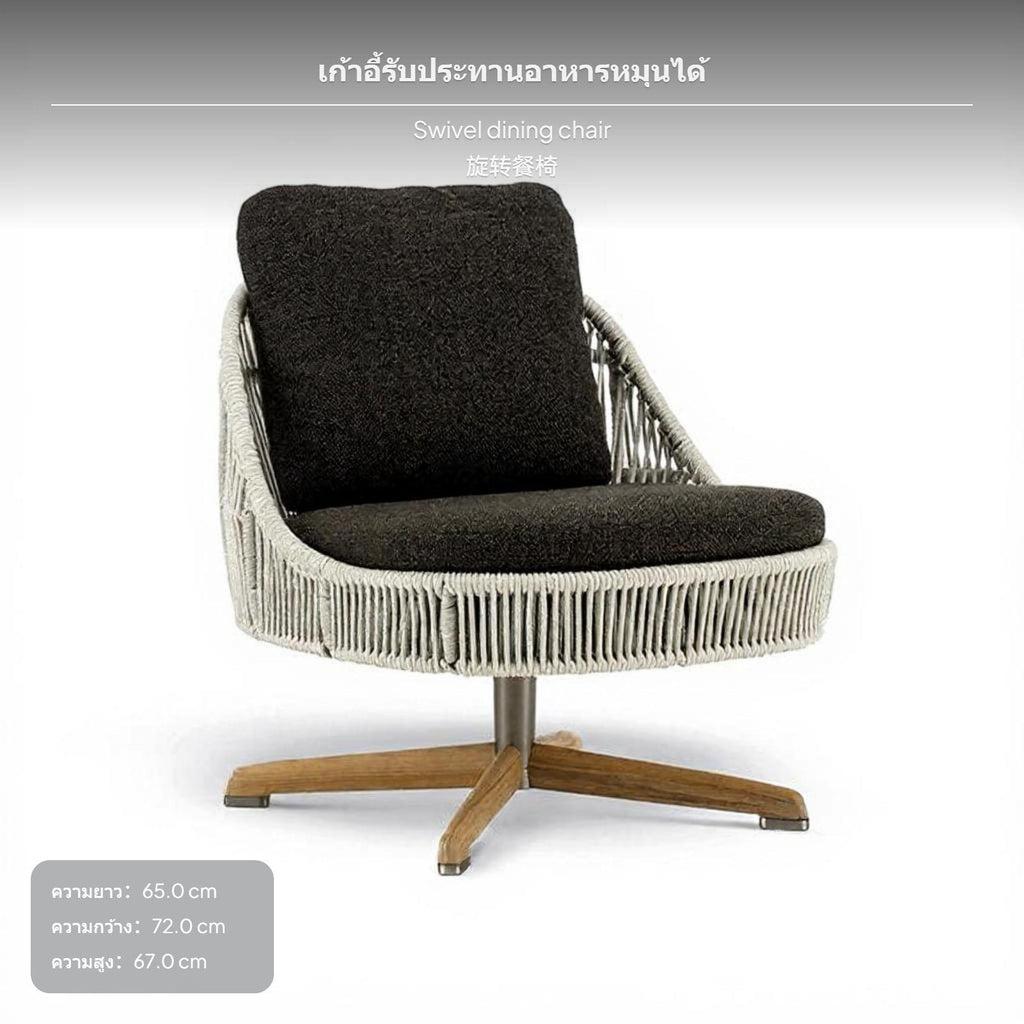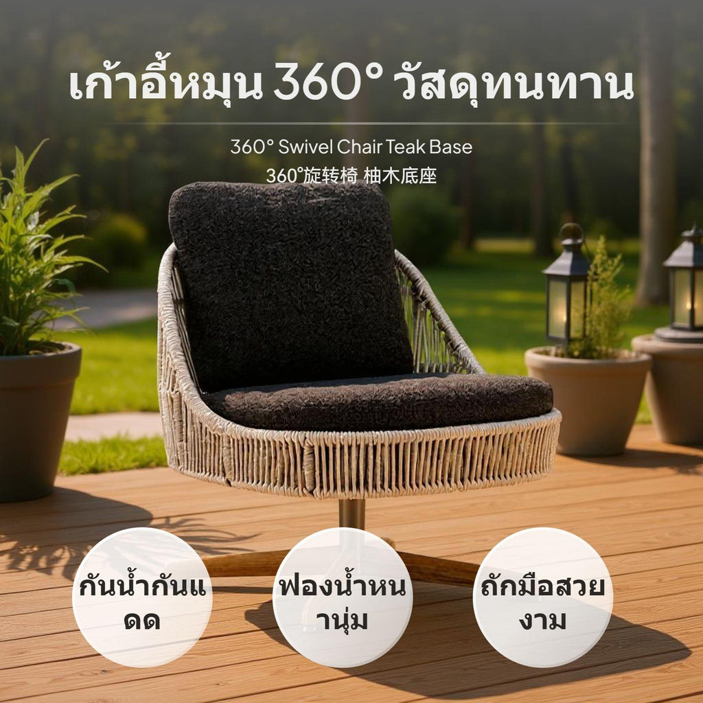Outdoor Patio Rattan Sofa Set, Teak rotating Dining Chair circular table, Waterproof