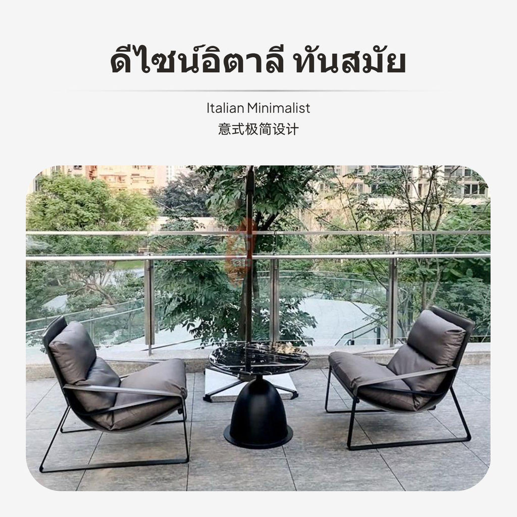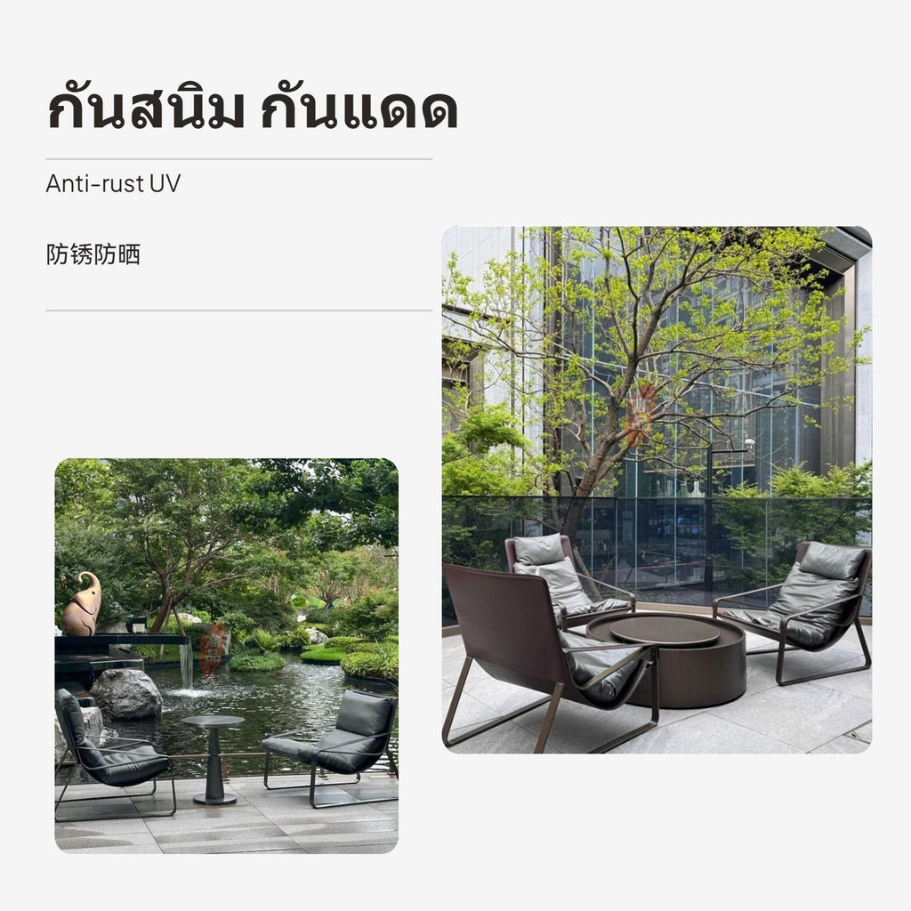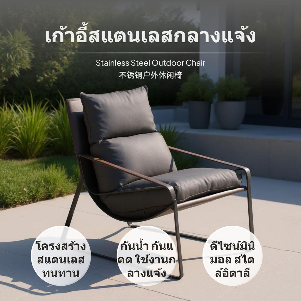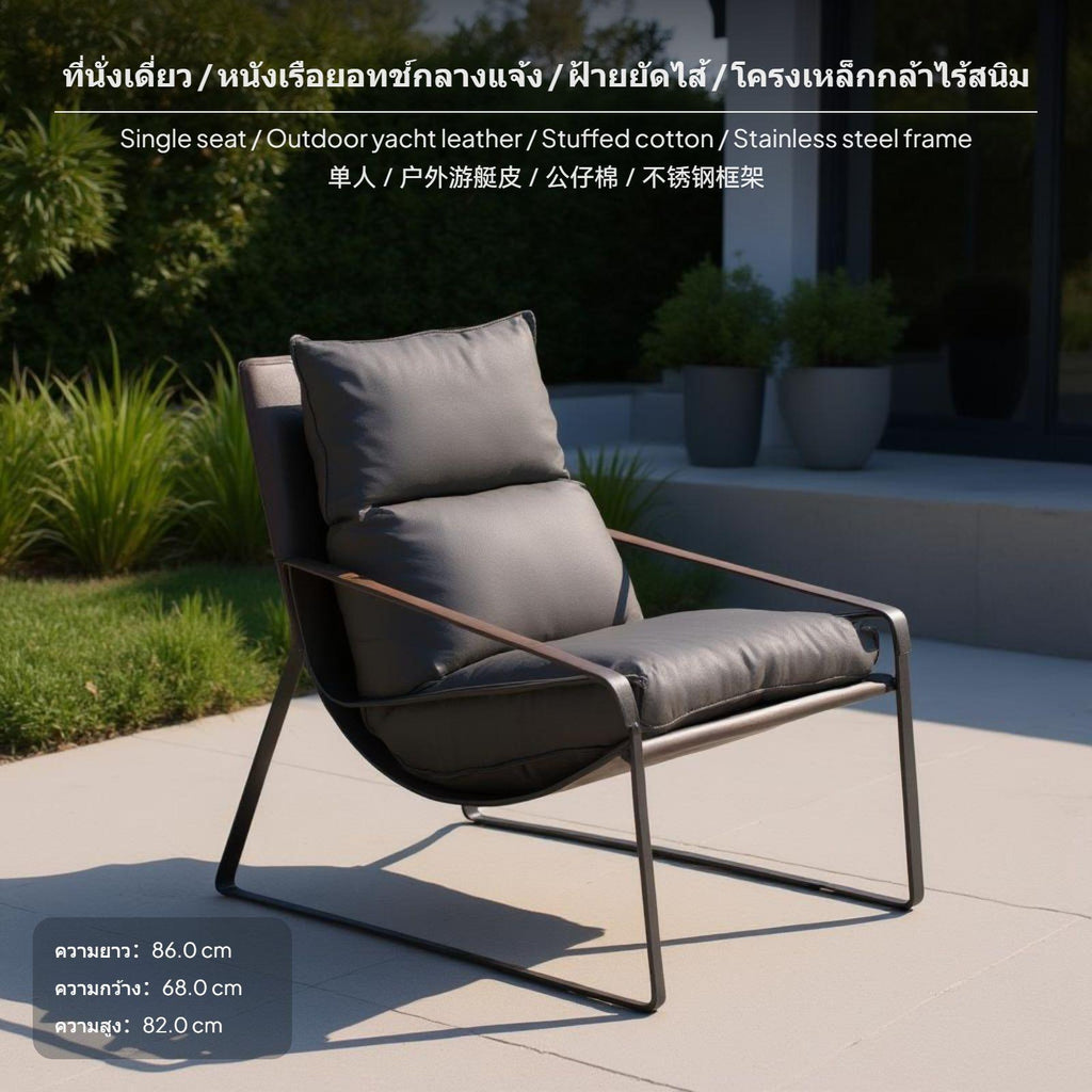 [adaptable Outdoor Lounging Solution] This outdoor sofa features waterproof and sun-protective yacht leather, along with a stainless steel frame, making it perfect for patios, gardens, villas, and terraces.[Modern Minimalist Design] Clean lines and a deep gray tone bring Italian minimalist elegance to any landscape, harmonizing with a variety of outdoor environments.[Comfortable Seating sensation] Filled with premium cotton, the curved seat and backrest provide soft, supportive comfort for extended relaxation in your backyard or on your balcony.[sturdy Stainless Steel framework] The joined metal frame ensures stability and outstanding durability to rustproofing, offering trusted quality for outdoor spaces.[No Assembly Required & Flexible Combinations] Instantly prepared for use, this single chair can pair with matching round tea tables or be combined into sets to meet different leisure needs.
