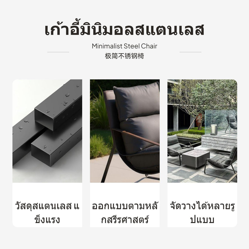 Outdoor Sofa, Patio Lounge Chair, Stainless Steel Armchair, Waterproof sun-resistant, Minimalist Garden Single Chair