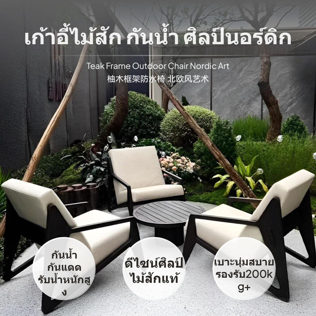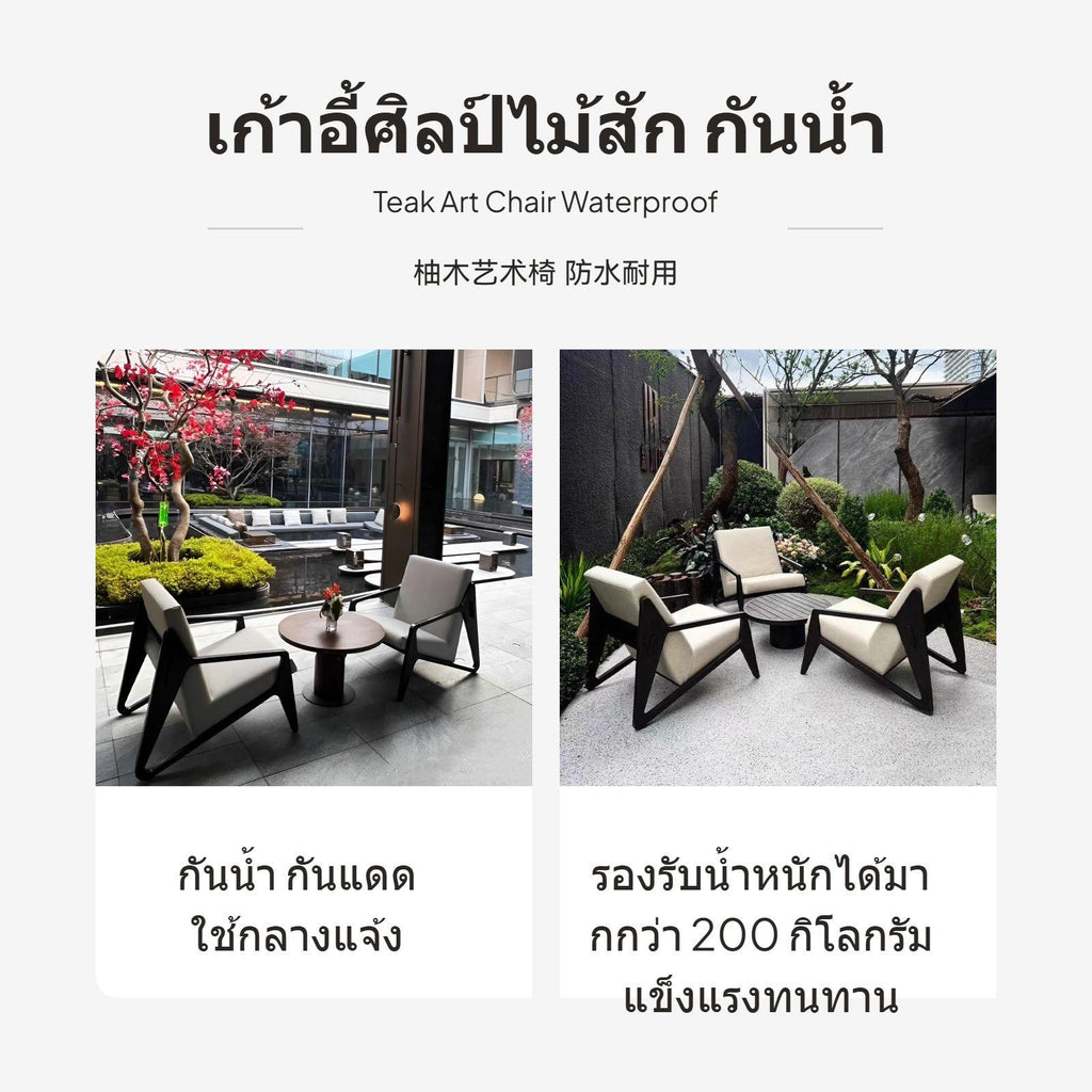 【Outdoor Teak Lounge Chair】 Combining teak frame and waterproof pad, this chair brings Nordic artistic design and tranquility to your patio, garden, or retreat space.【Waterproof & sunlight-resistant Resistant Fabric】 The seat pad uses high-performance waterproof fabric, offering superb protection to water, sunlight, and wear, ensuring longenduring elegance and comfort outdoors.【firm Foam Filling】 Filled with resilient foam, the pad provides superior comfort and support, maintaining its shape even after extended use.【Sturdy robust framework】 The robust teak frame supports over 200kg, making it safe and dependable for adults in various outdoor settings such as hotels, villas, and balconies.【Customizable Artistic Design】 Minimalist artistic design blends seamlessly into high-end outdoor spaces, with choices for personalized customization in design, material, color, and size.Specification: