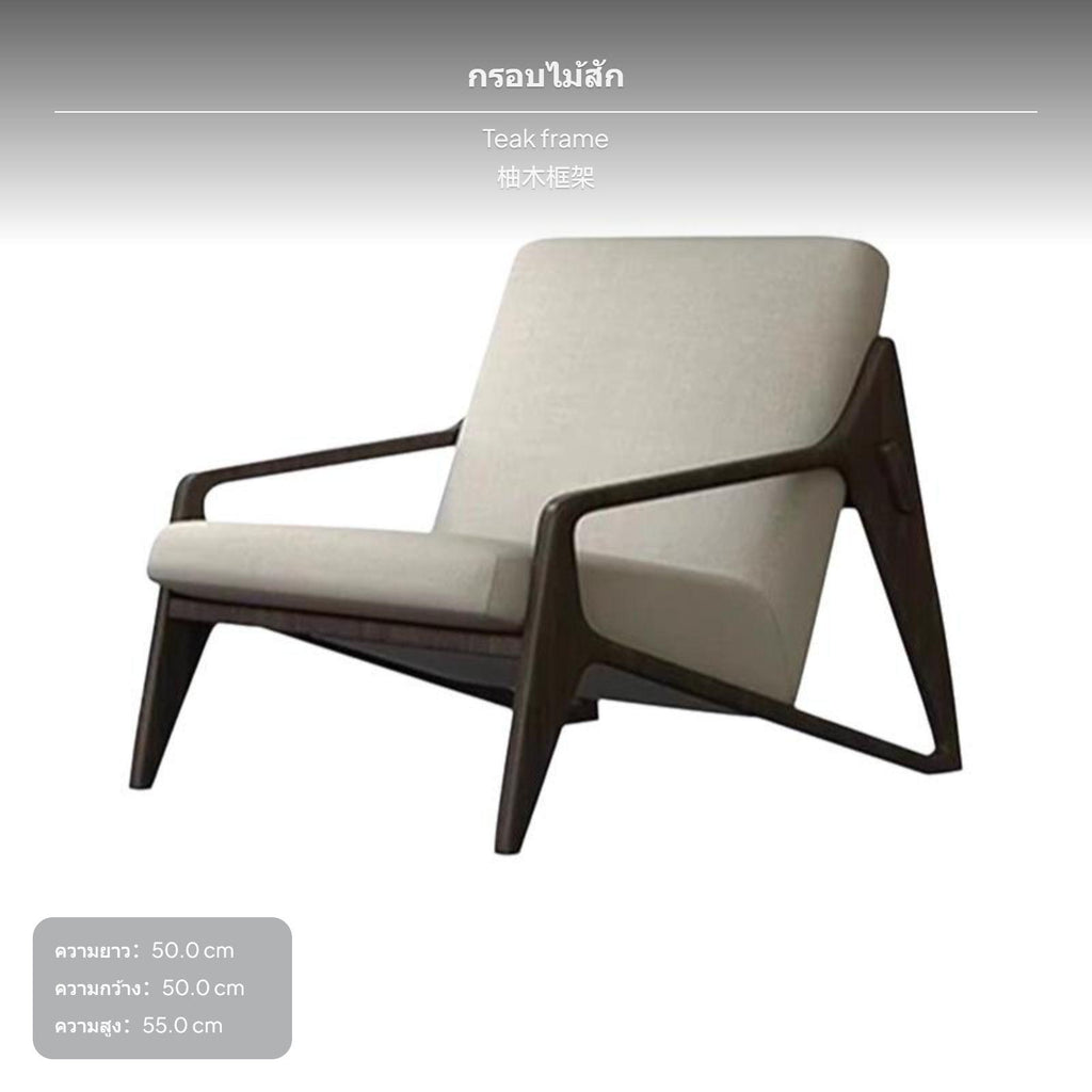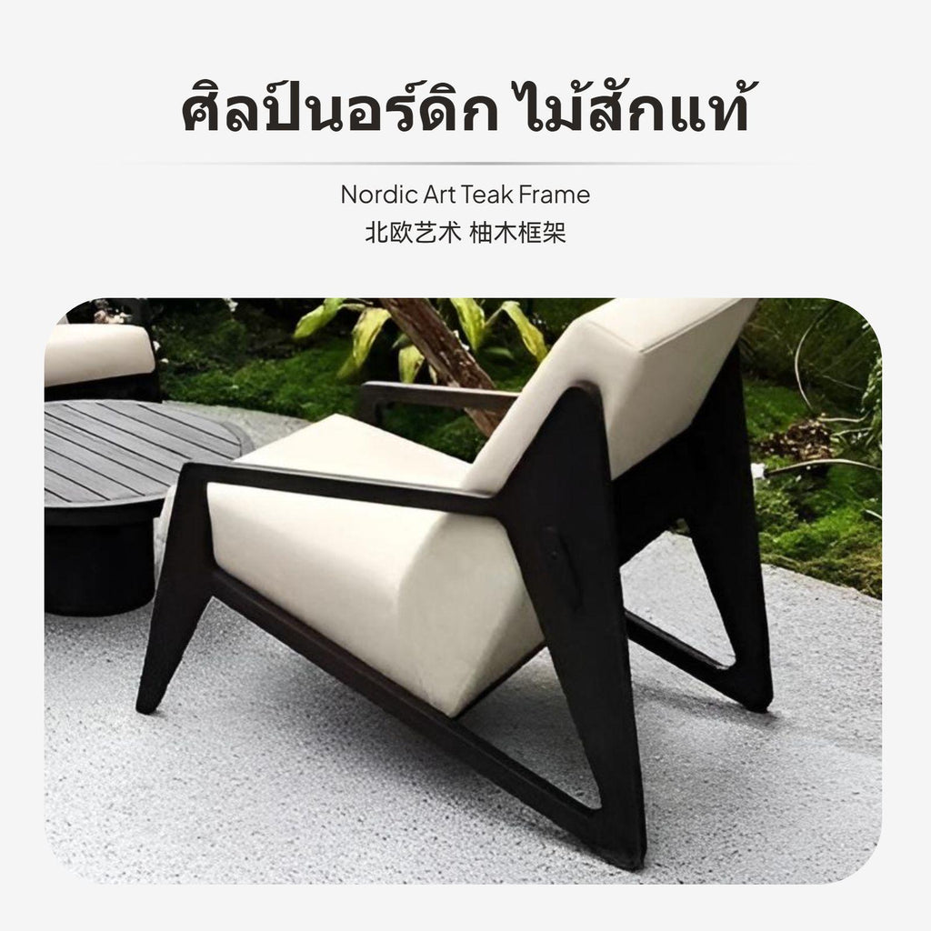 Outdoor Teak Lounge Chair, Waterproof pad, Nordic Designer Patio Sofa