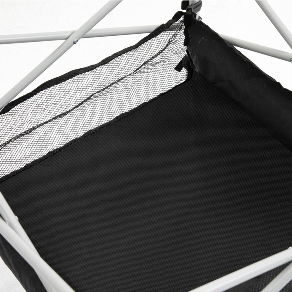 - STEEL FRAME: A sturdy structure which won't bend when set up. Powder coated for extra strength. MESH BAG: Allows air through, making it suitable for holding food on hotter days.