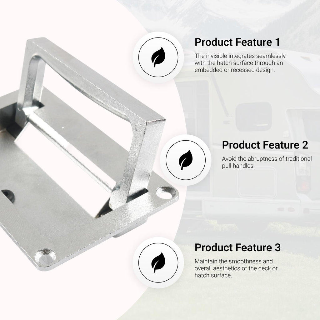 【Design】: The embedded or recessed design of the Tools box Recessed Flush Pull Handle ensures that it blends with the hatch or deck surface, maintaining a smooth and beautiful appearance and avoiding the abrupt feeling of traditional handles
