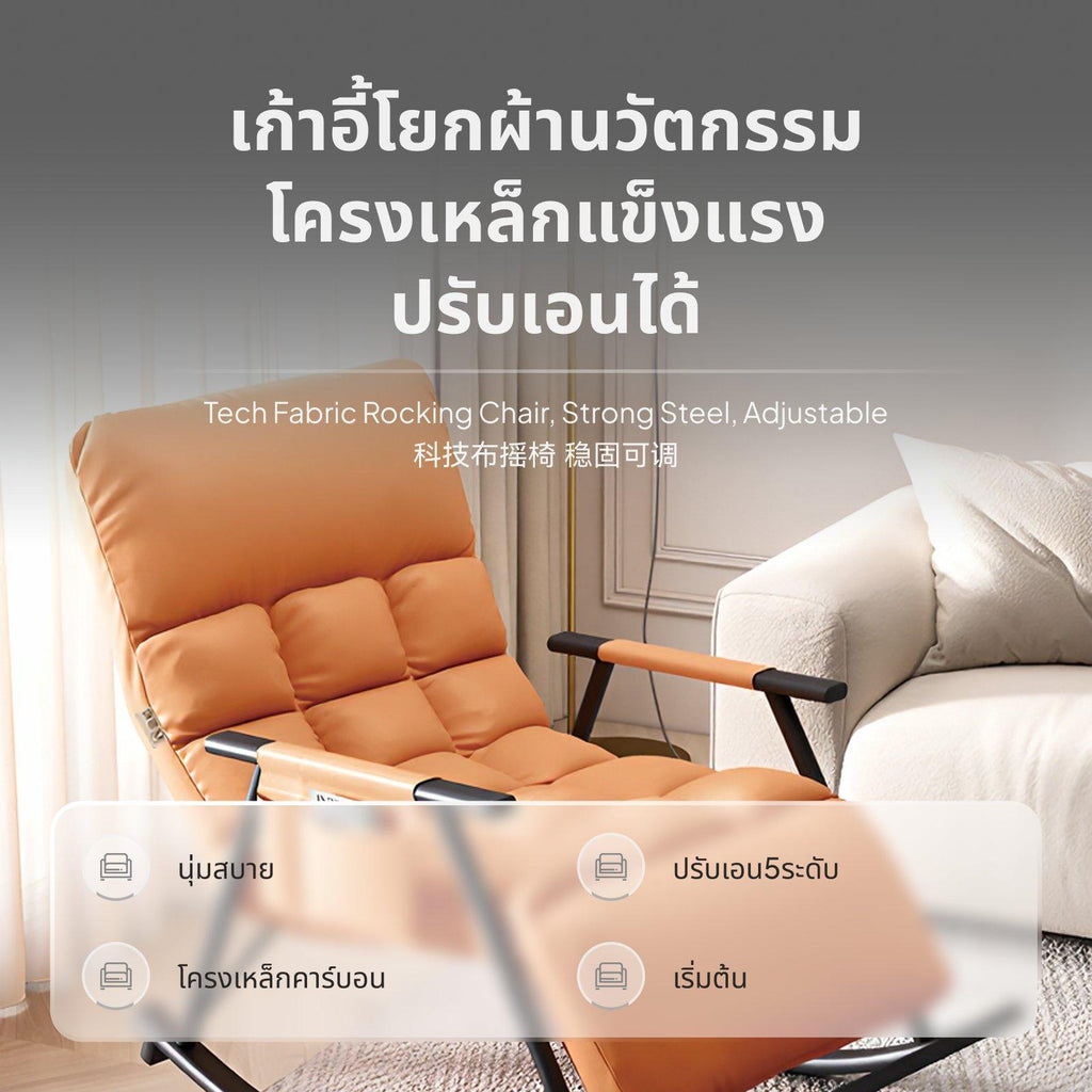 Maxbell Reclining Rocking Chair for Living Room, 5-Level Adjustable, Tech Fabric, 150kg Black Leg Orange