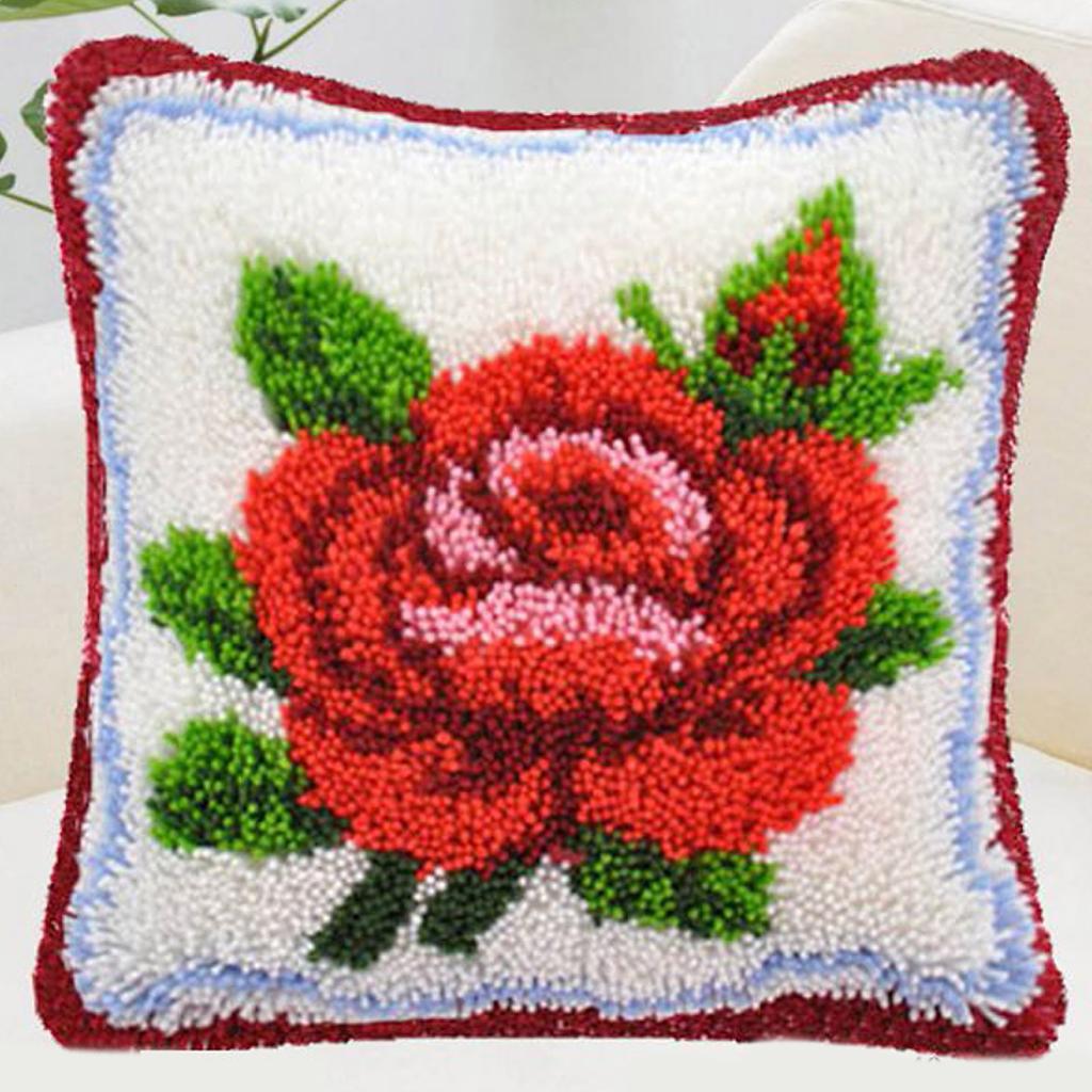 Red Rose Flower Latch Hook Kit for DIY Pillow Cover Sofa Cushion Cover