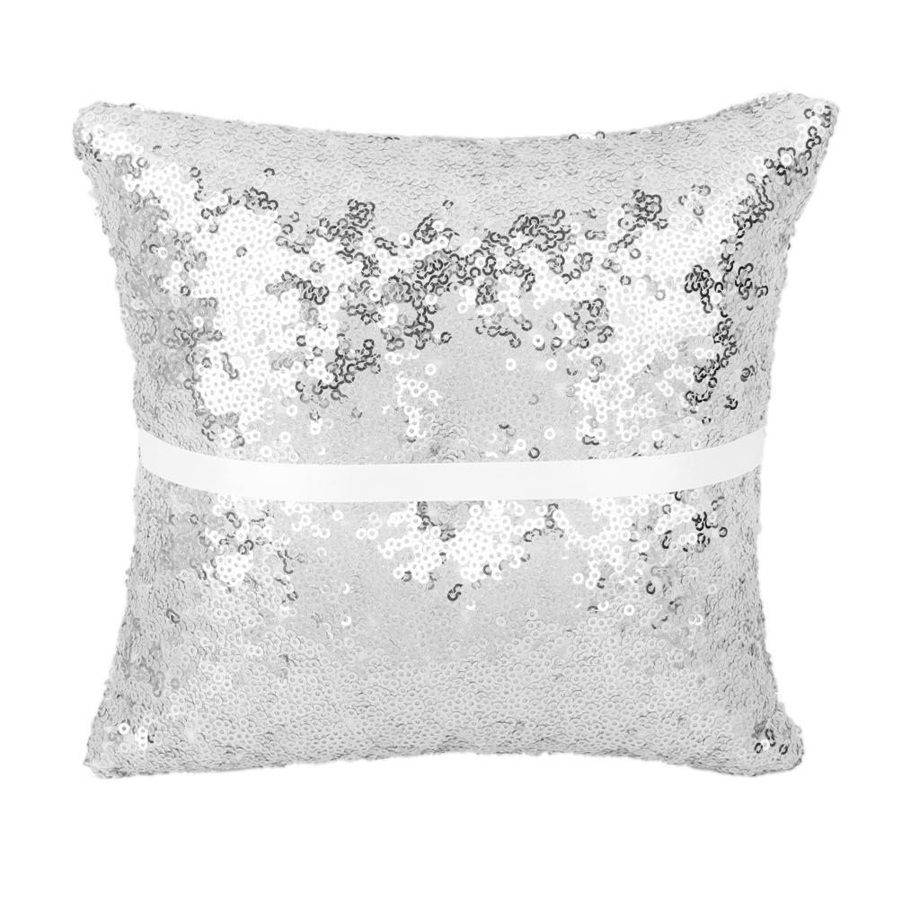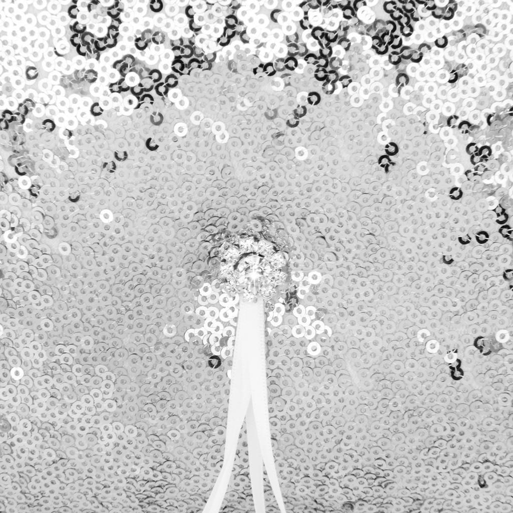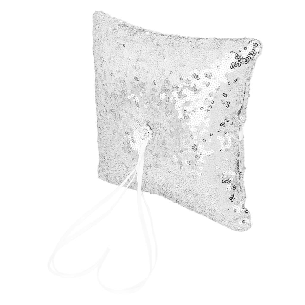 Maxbell Ring Pillow&Basket Set Sequin Rhinestone Wedding Decor Ribbon Flower -Silver