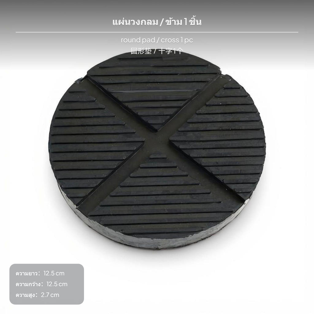 【Comprehensive Protection】This rubber jack pad provides effective cushioning and protects your car chassis from scratches and damage during maintenance.【Premium Material】Made of high-quality rubber, featuring excellent toughness, strong load-bearing capacity, and outstanding durability for various car models.【Anti-Slip Design】Cross and stripe textured surface increases friction, ensuring stable and safe jack operation without slipping.【Strong Practicality】Standard size (125mm diameter, 27mm thickness) fits hydraulic jacks, making it ideal for car repair and emergency rescue.【High Cost Performance】Fine workmanship, insulated and corrosion-resistant, easy to install, perfect for car maintenance and tire replacement.Specification: