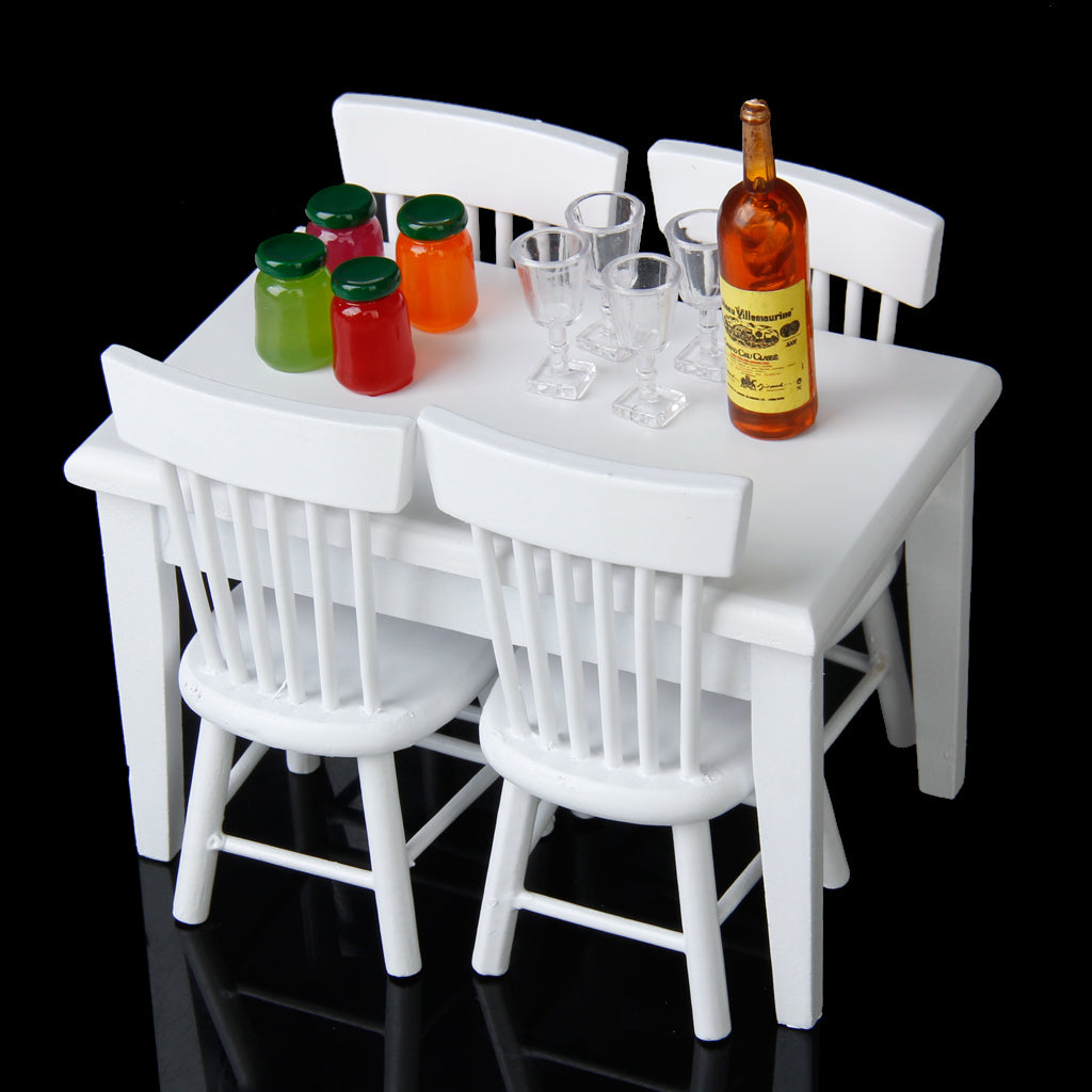 This table chair model set is well designed and crafted for your children to have the best house-hold companion for all day long playing. Imitation big table with four chairs which each has a hollow on the back is very stylish and fashionable. This table model set is great miniature furniture for your dollhouse living room and a excellent decoration for your interior model.