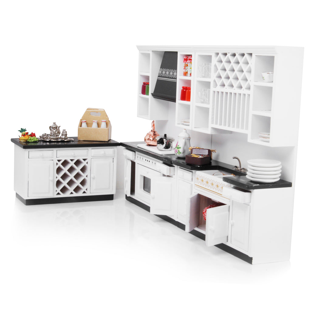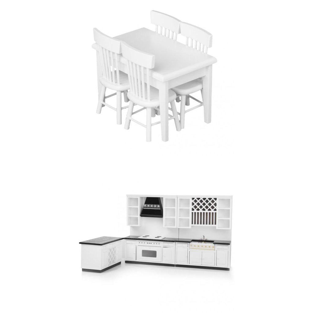 Maxbell Set of Dining Table Chair Set&Kitchen Set 1:12 Dollhouse Miniature Furniture