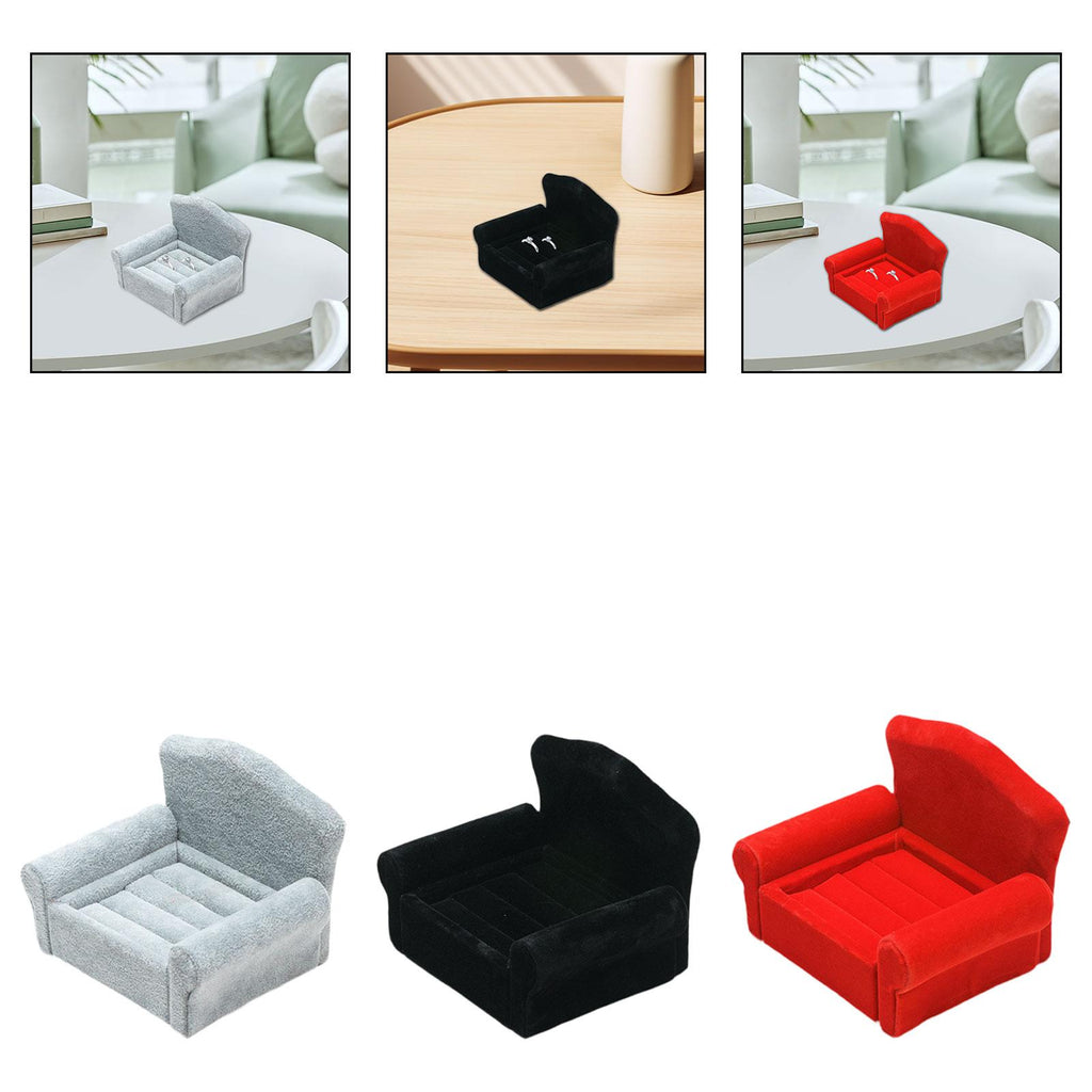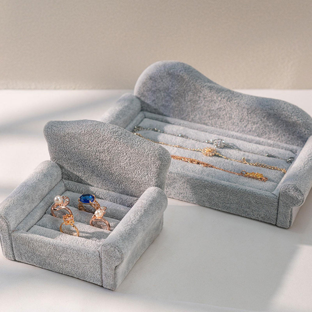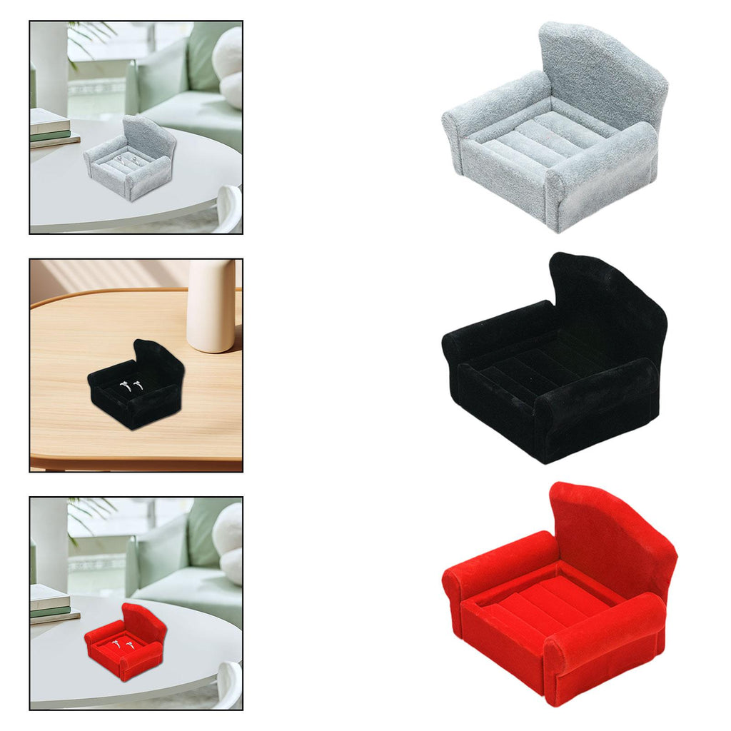 Sofa Shaped Ring Display Stand Rack for Countertop Tabletop Photography Prop Gray