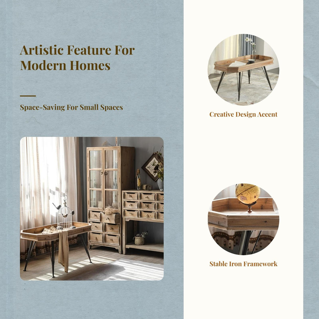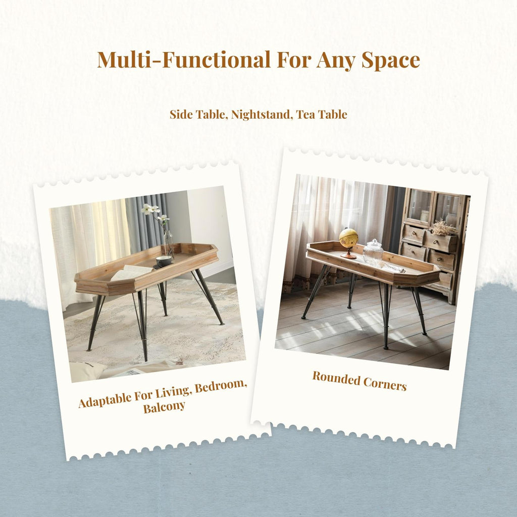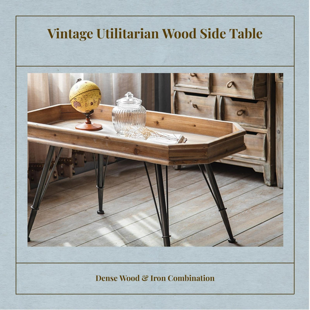 【Adaptable Sofa Side Table for Small Spaces】combineing sturdy wood and wrought iron, this rectangular side table is perfect for living rooms, bedrooms, balconies, and offices, delivering a stylish retro utilitarian appeal.【High-Quality Materials Ensure Durability】Made from hardwood wood and robust iron, this table boasts a strong frame and sturdy texture, ensuring long stability and use.【Space-Saving Design for Modern Homes】Its portable design accommodates perfectly in small spaces, corners, or beside sofas and beds, optimizing organization and storage in your room.【Multipurpose Functionality】Use it as a coffee table, nightstand, accent table, or display stand for beverages, books, or decor, making it a versatile addition to any home setting.【Easy to Integrate with Various Designs】The vintage utilitarian design and geometric metal frame combine effortlessly with modern, retro, or minimalist decor, enhancing the look of your home.Specification:
