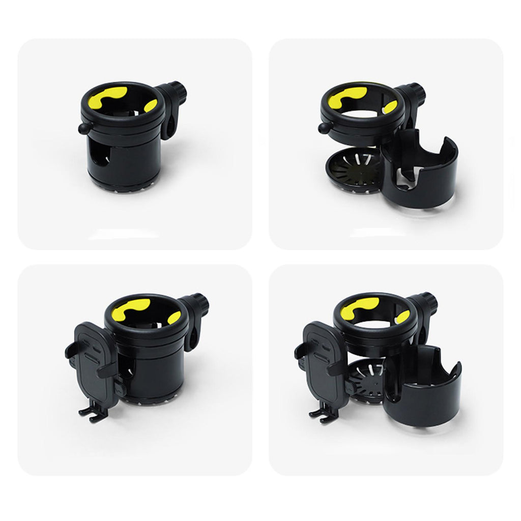 【3 in 1 Design】: This stroller cup holder not only holds but also functions as a bottle holder and phone stand, meeting various needs when you're out and about.
