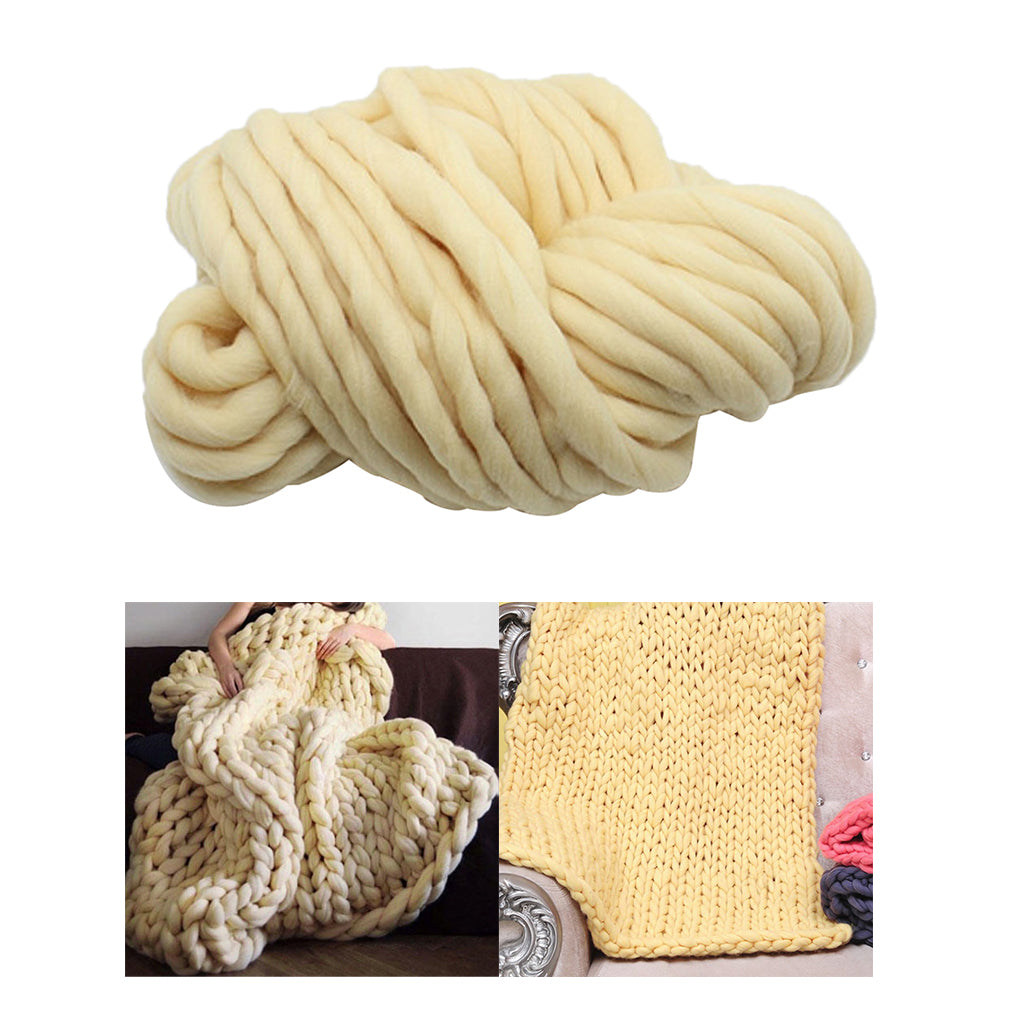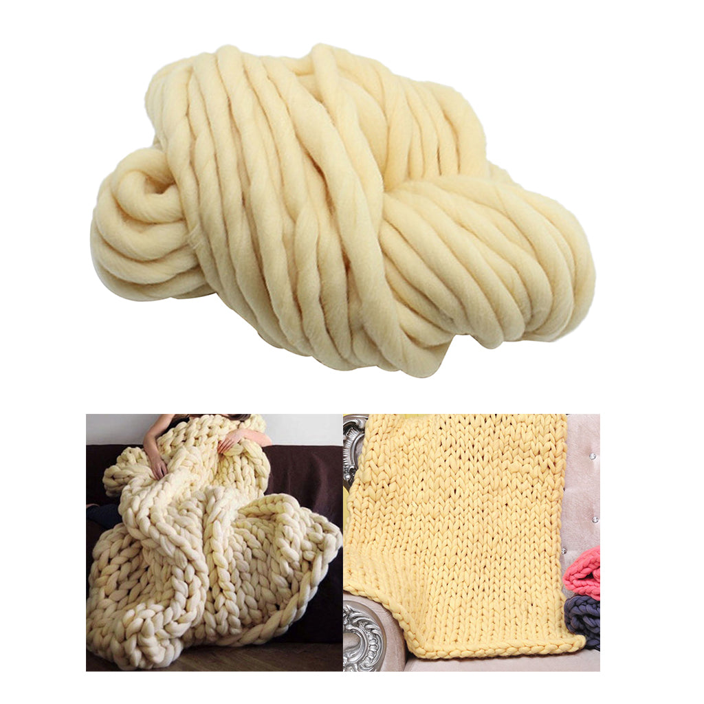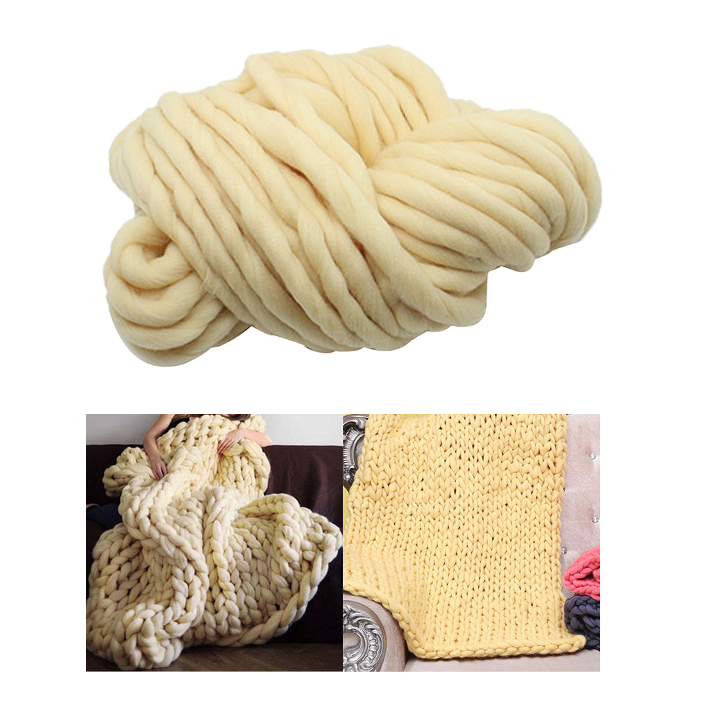 Maxbell Thick Knitted Wool Throw Blanket Chunky Sofa Blanket Kids Adults Beige