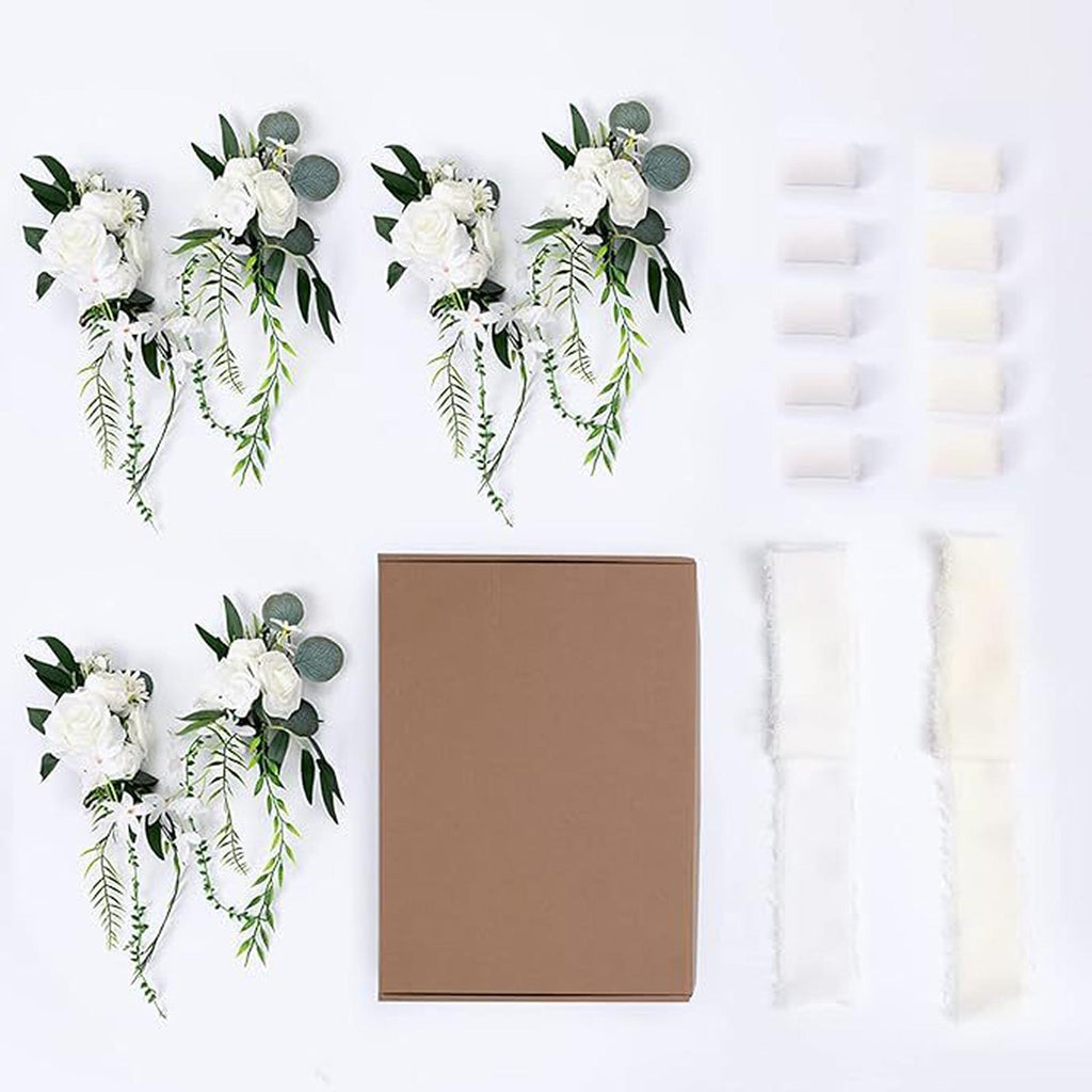 Maxbell Wedding Chair Back Flowers Aisle Bench Floral for Party Reception Engagement White