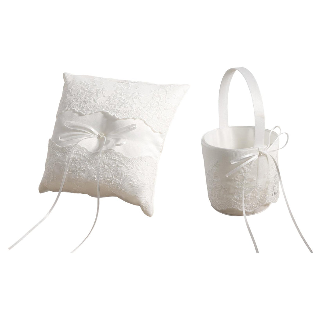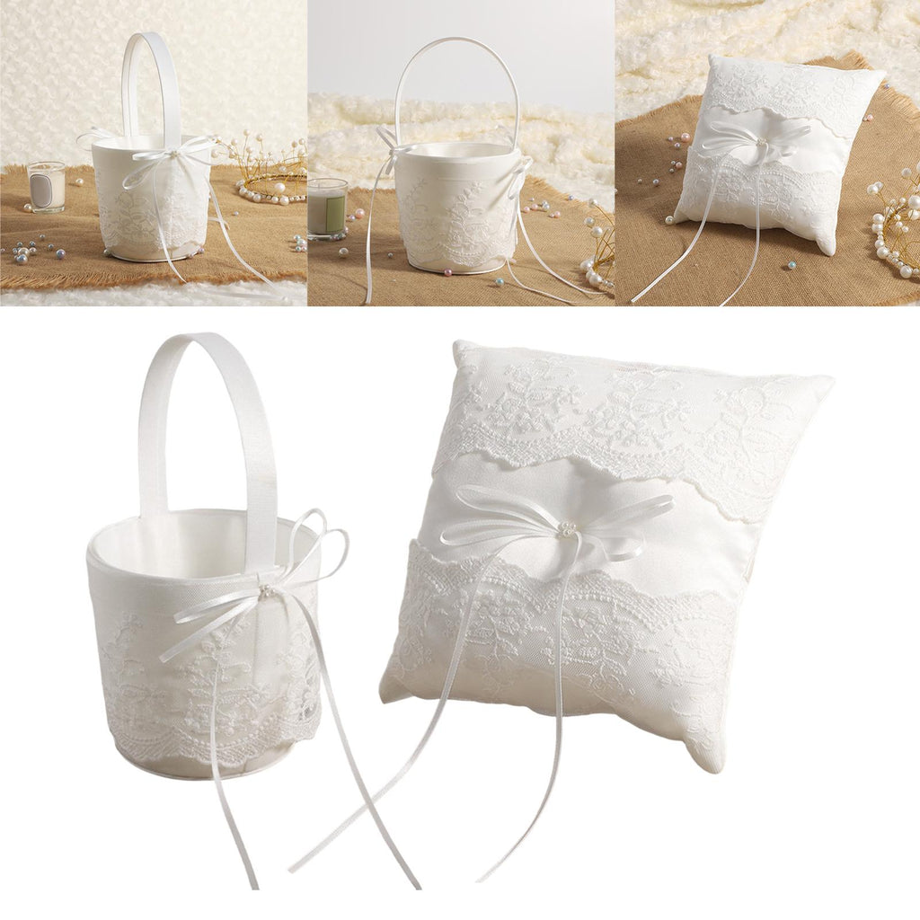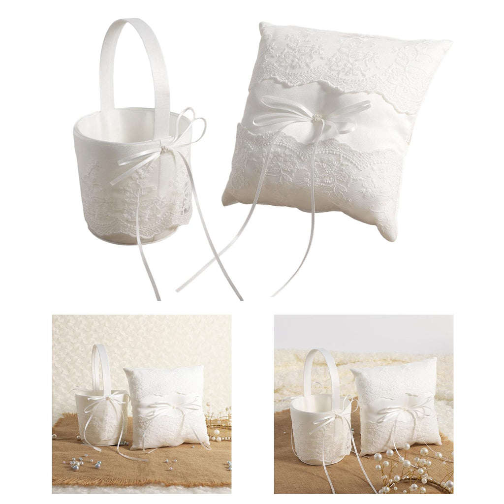 Maxbell Wedding Ring Pillow Basket White Romantic Soft for Ceremony Flower Girls